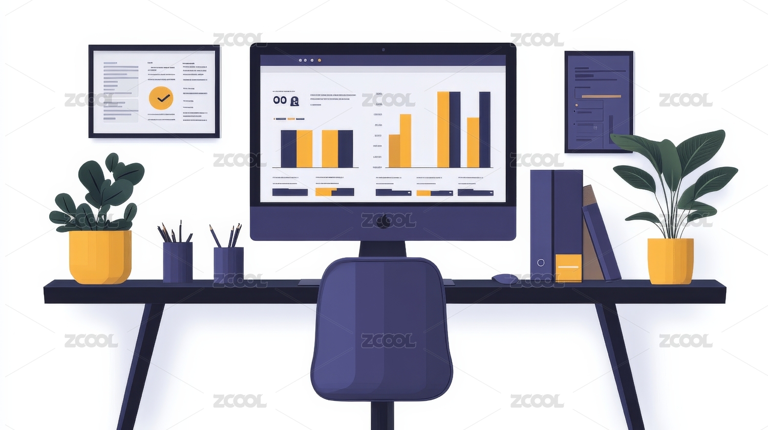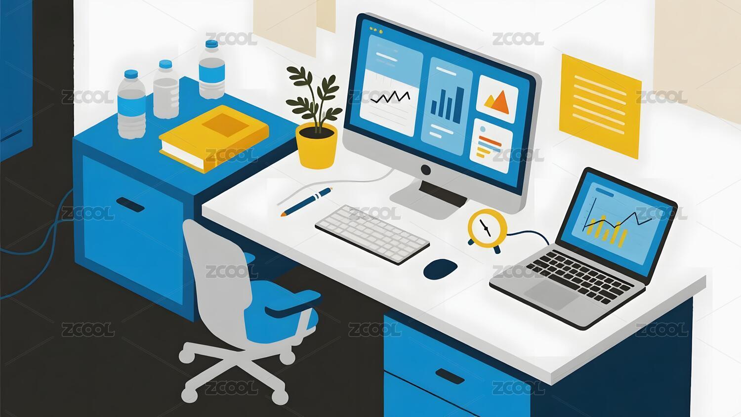 办公桌,电脑,笔记本,数据,图表,植物,台灯,办公室,工作,空间