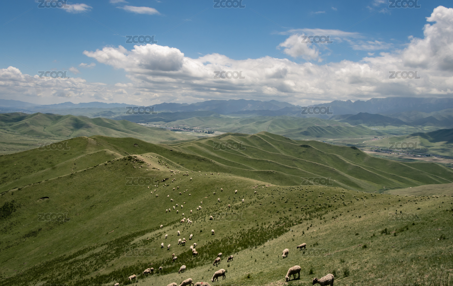 风景,自然,户外,甘肃,武威,乌稍岭,高原,三大高原交汇地,蓝天白云,羊群