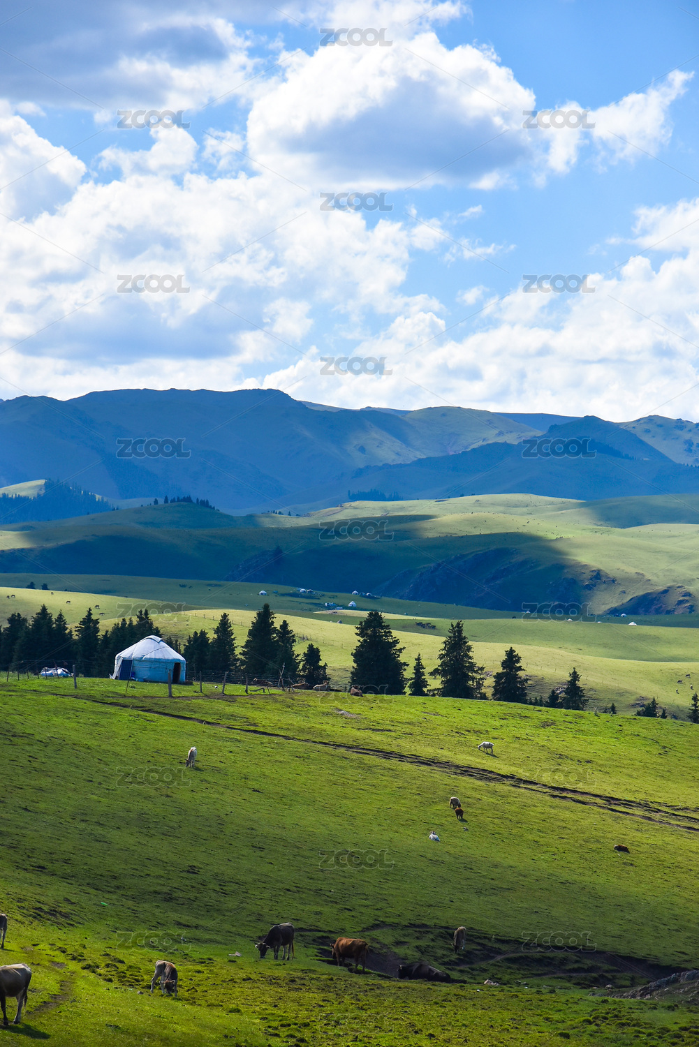 美丽的中国新疆伊犁伊昭公路沿途山地与草原