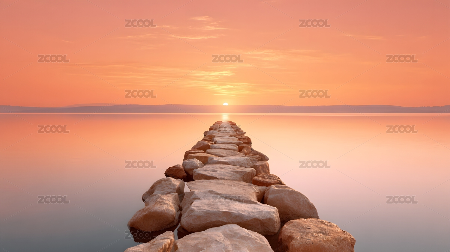 风景,石头,海洋,黄昏,夕阳,天空,云彩,三维,场景,地平线