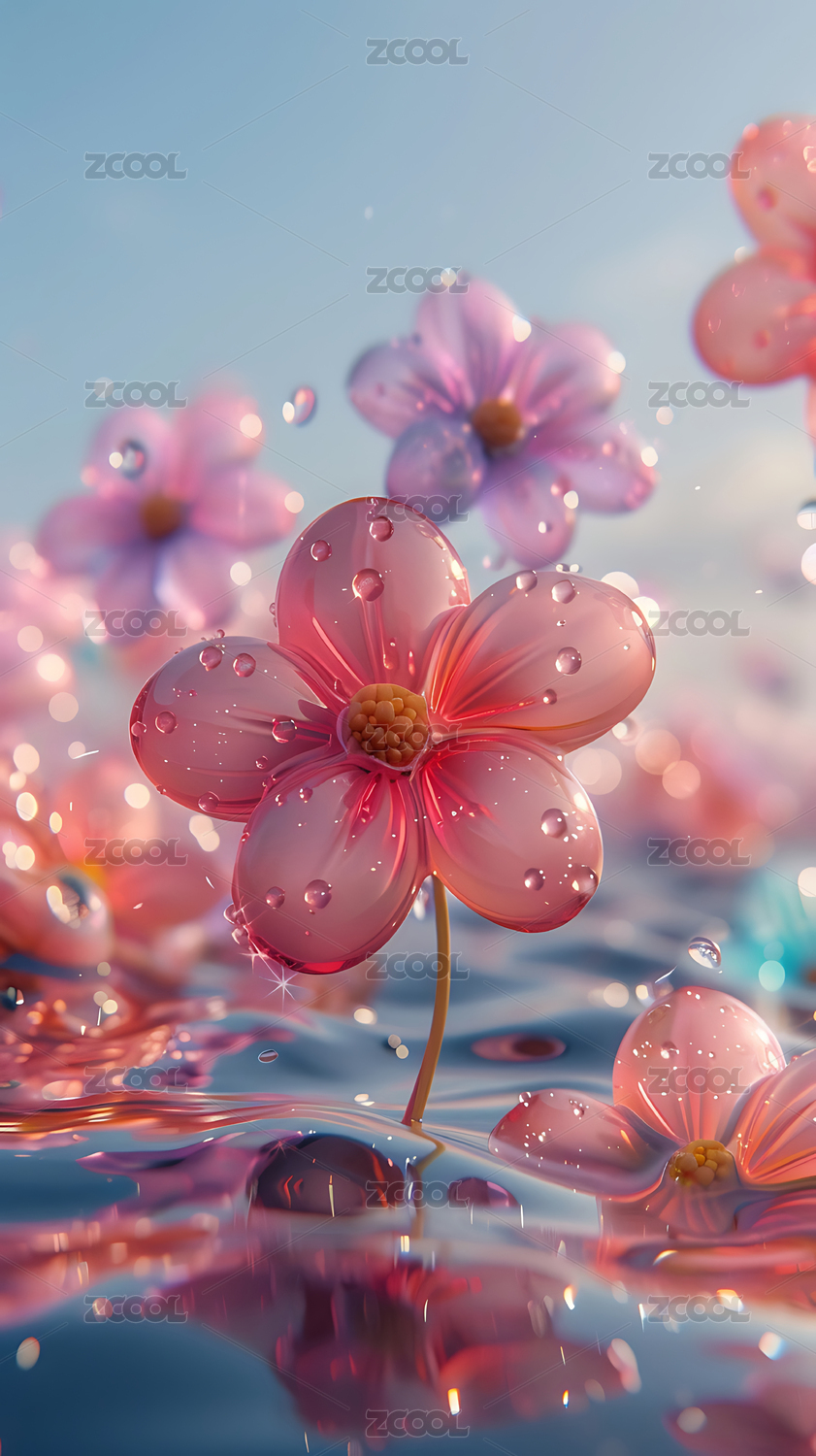 水中绽放的粉色清新小花