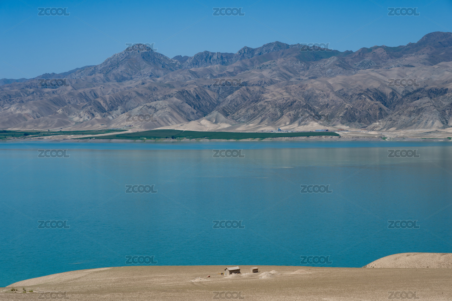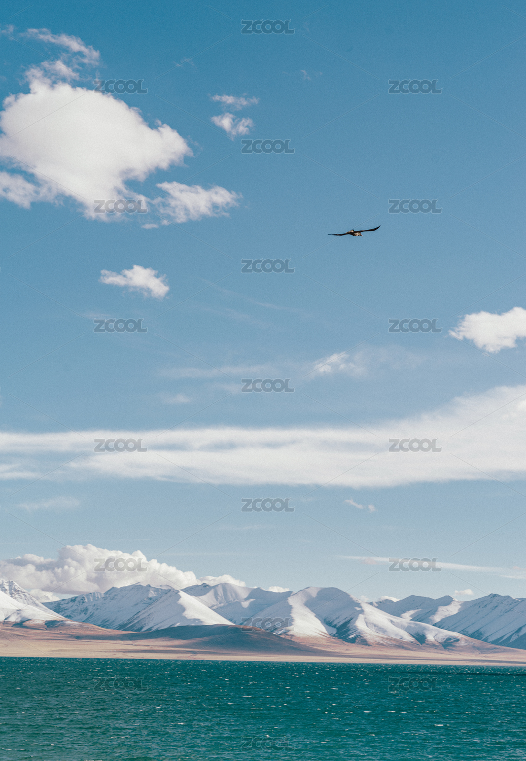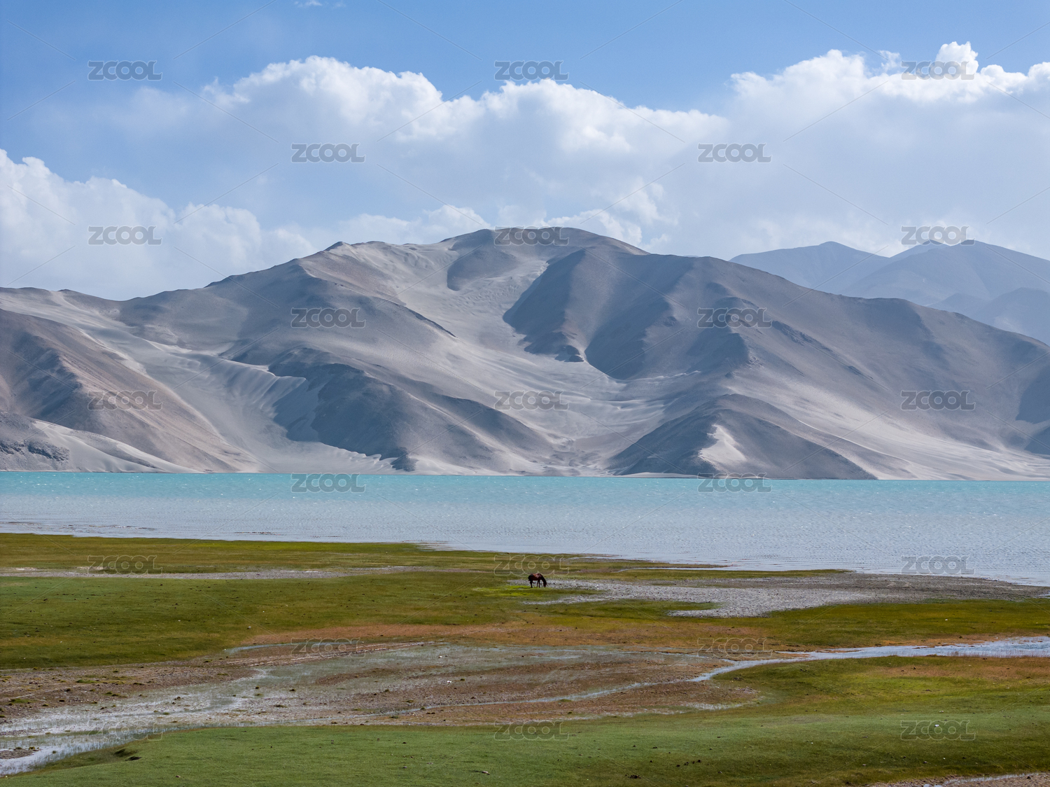 中国新疆湖水与群山蓝天白云自然风景