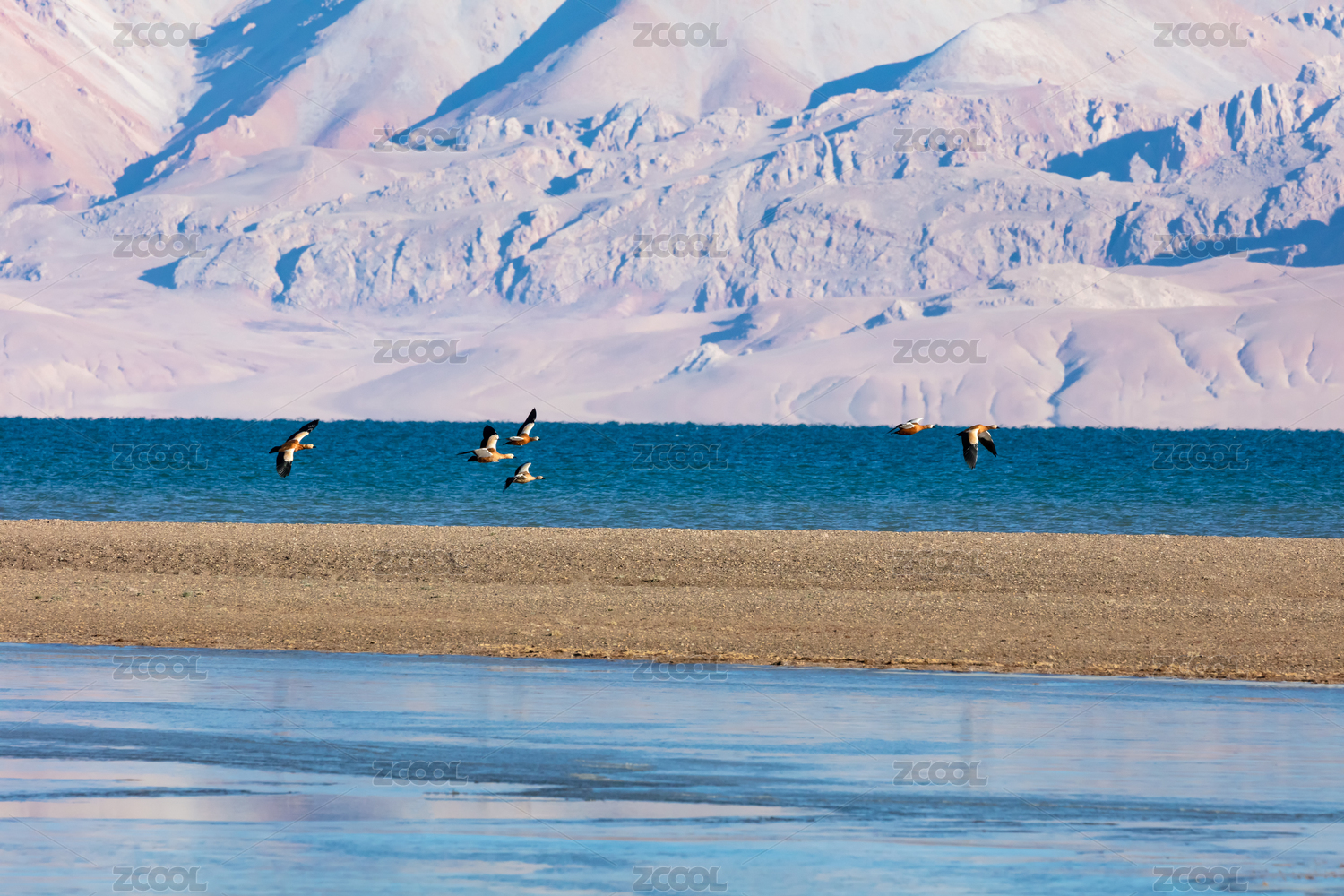 中国西藏那曲市申扎县格仁措湖上的赤麻鸭