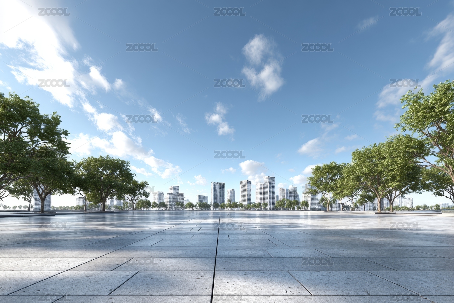 城市天际线与广场