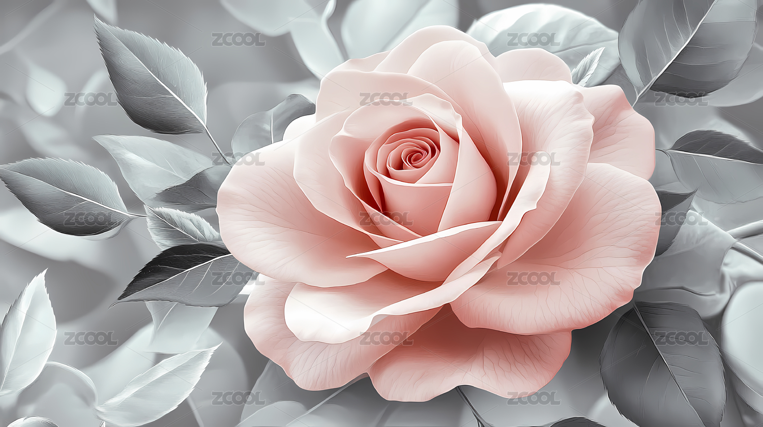 细腻柔和的淡粉色玫瑰特写
