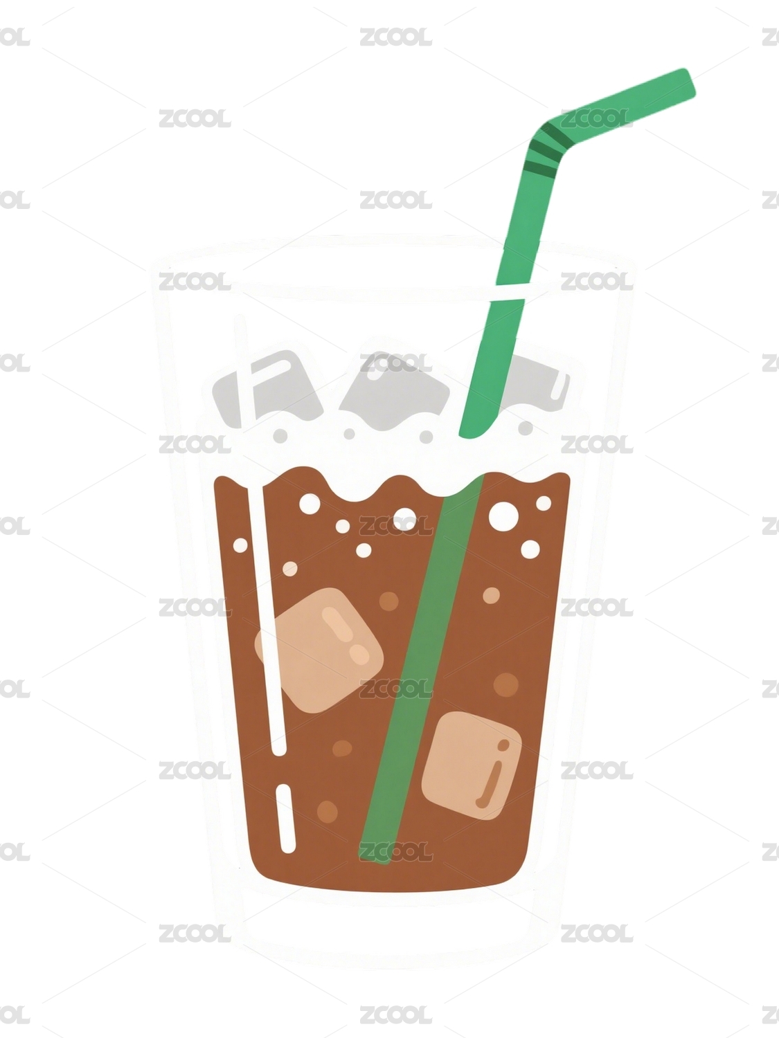 手绘矢量饮料杯子可乐吸管餐饮碳酸卡通