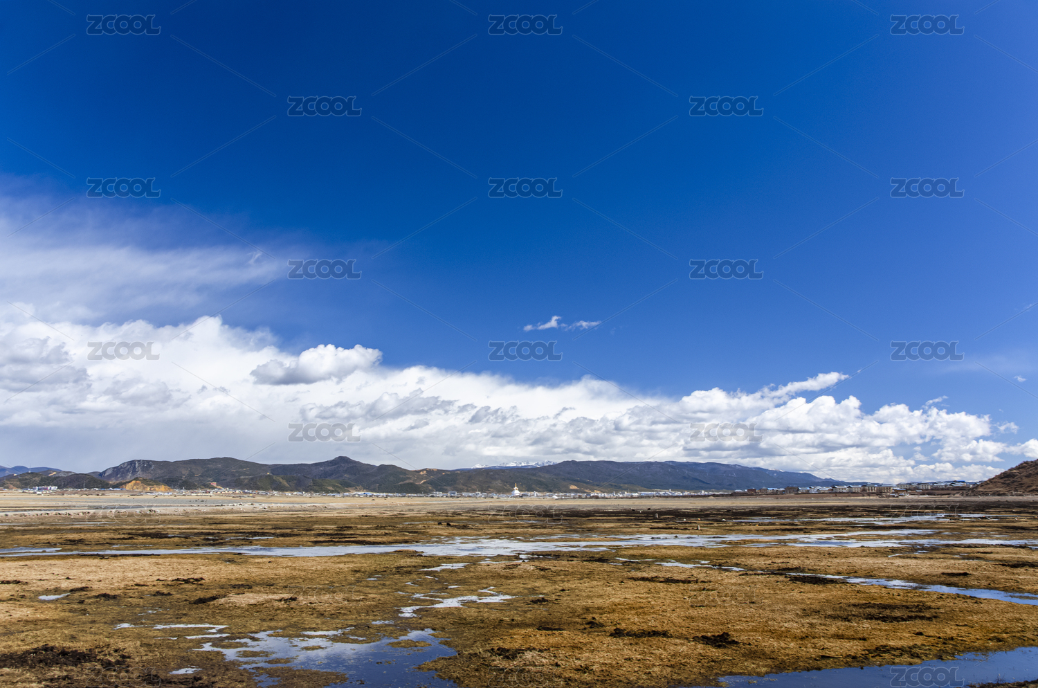 中国西藏高原河流山脉蓝天白云
