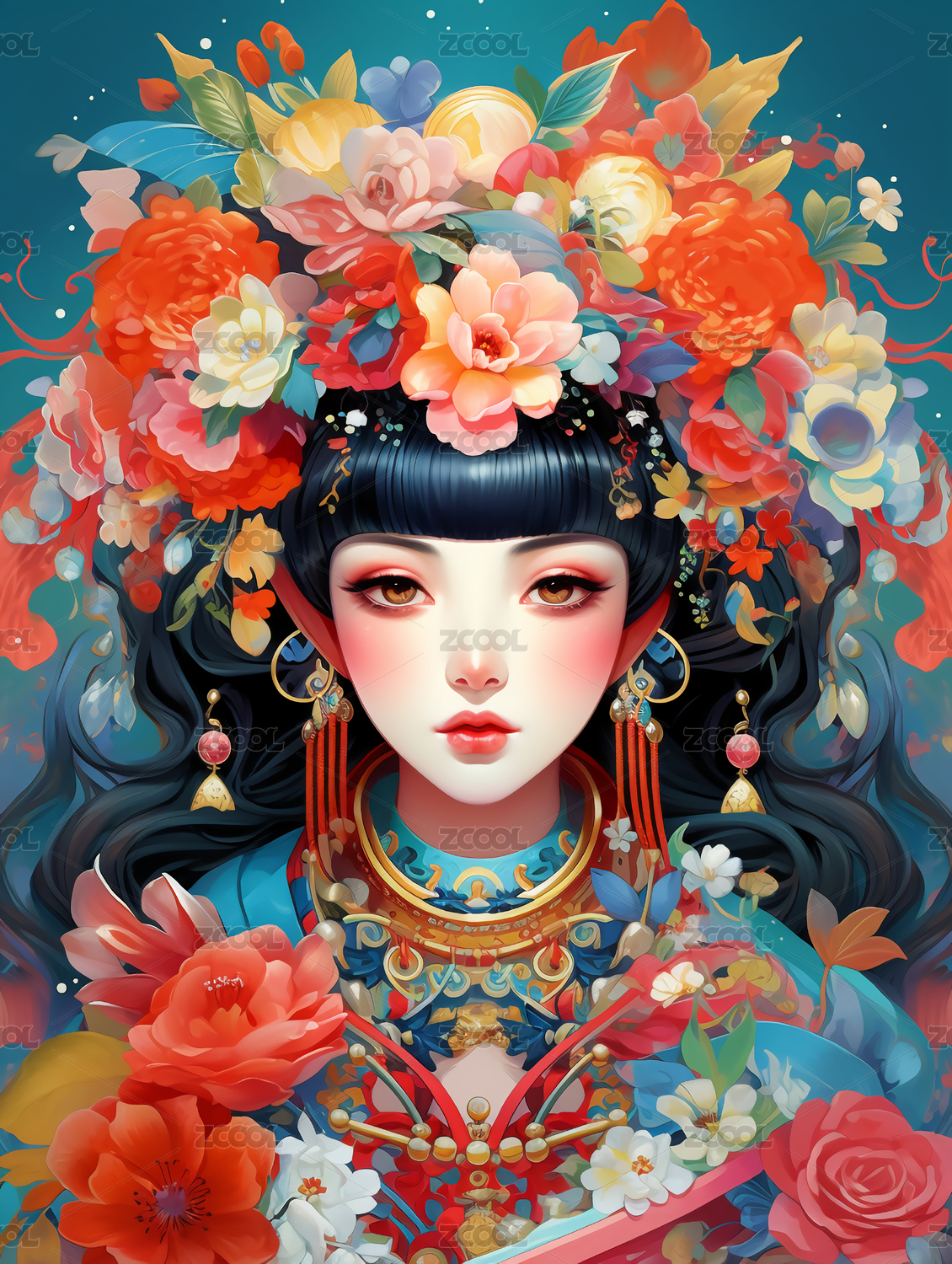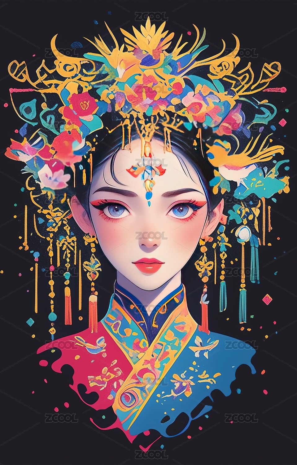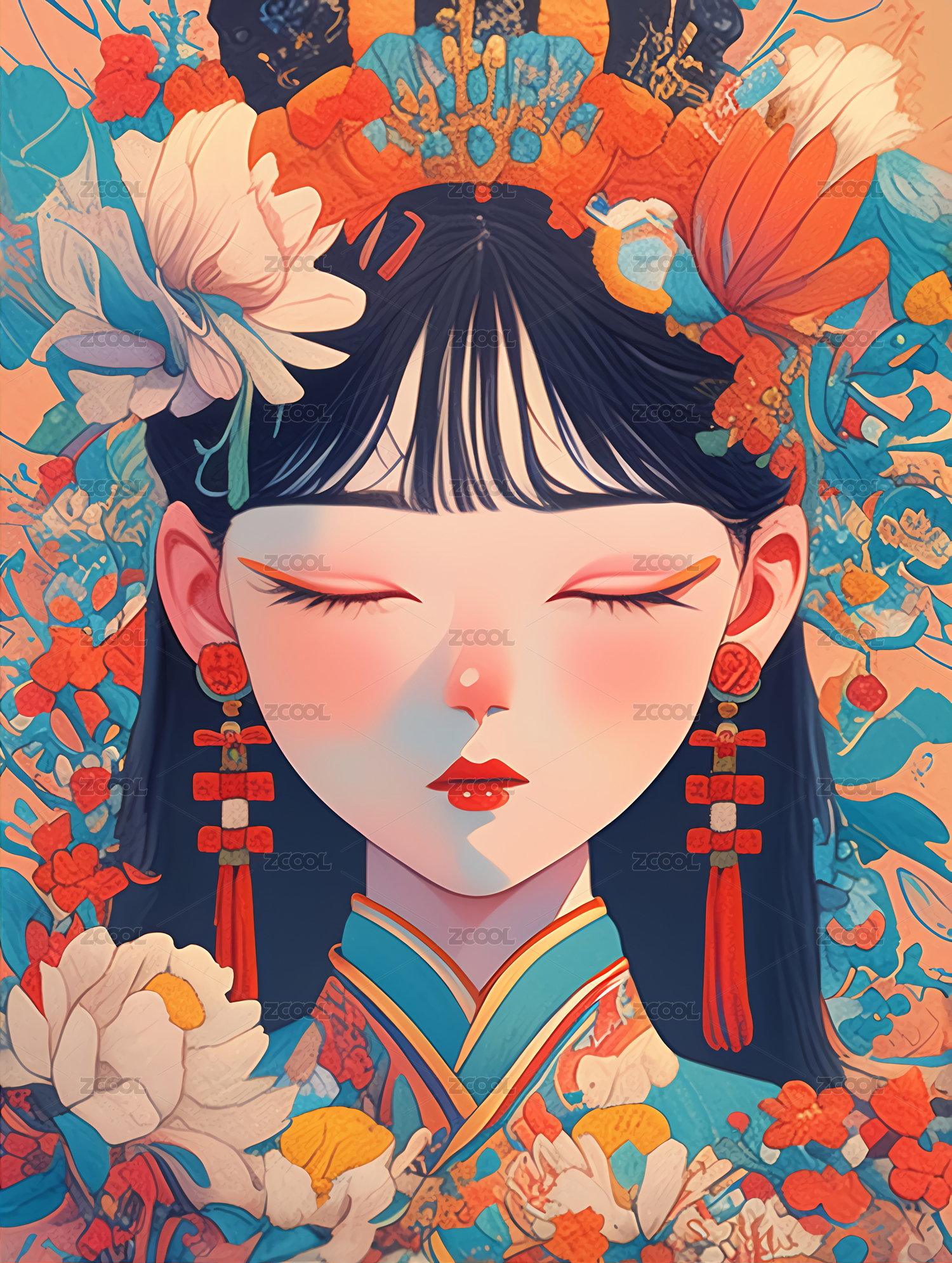 插画,背景,壁纸,头像,女孩,美女,国潮,古风,汉服,人物