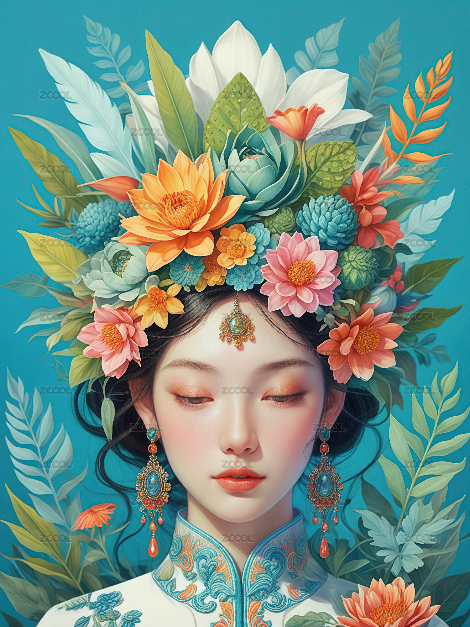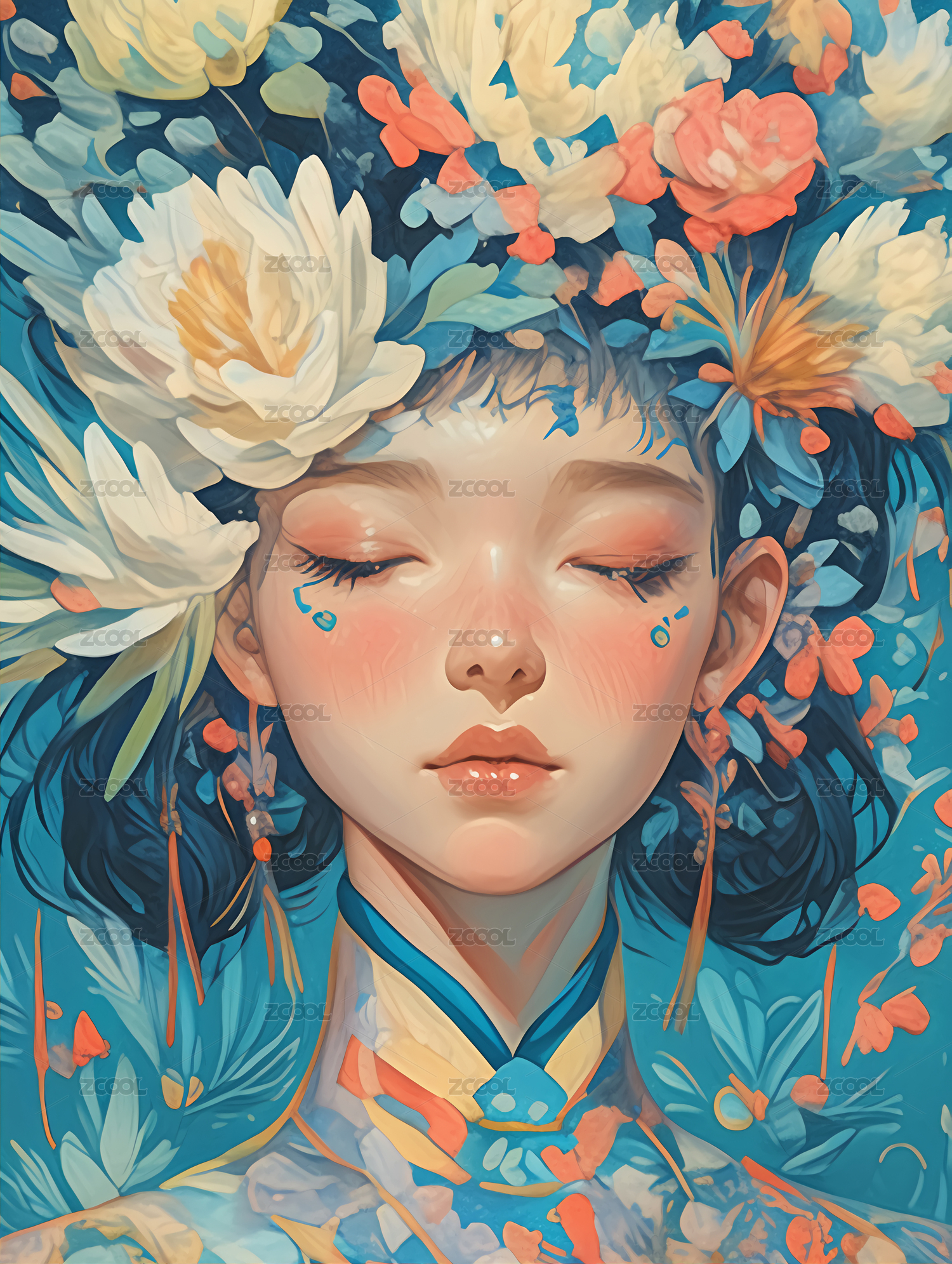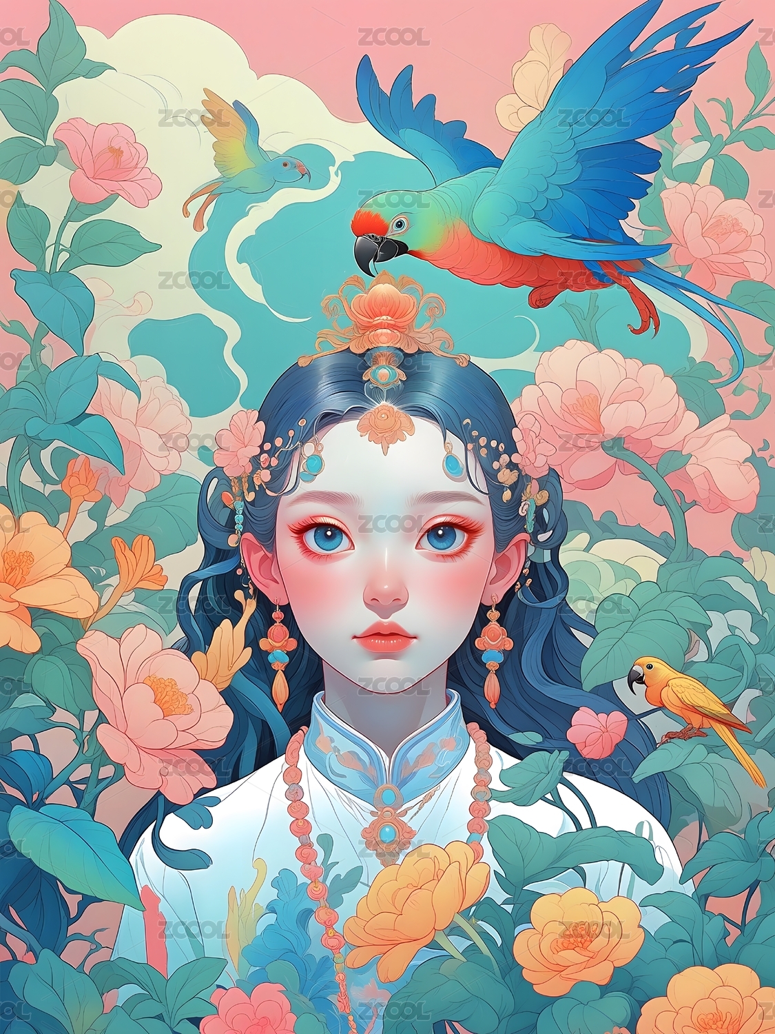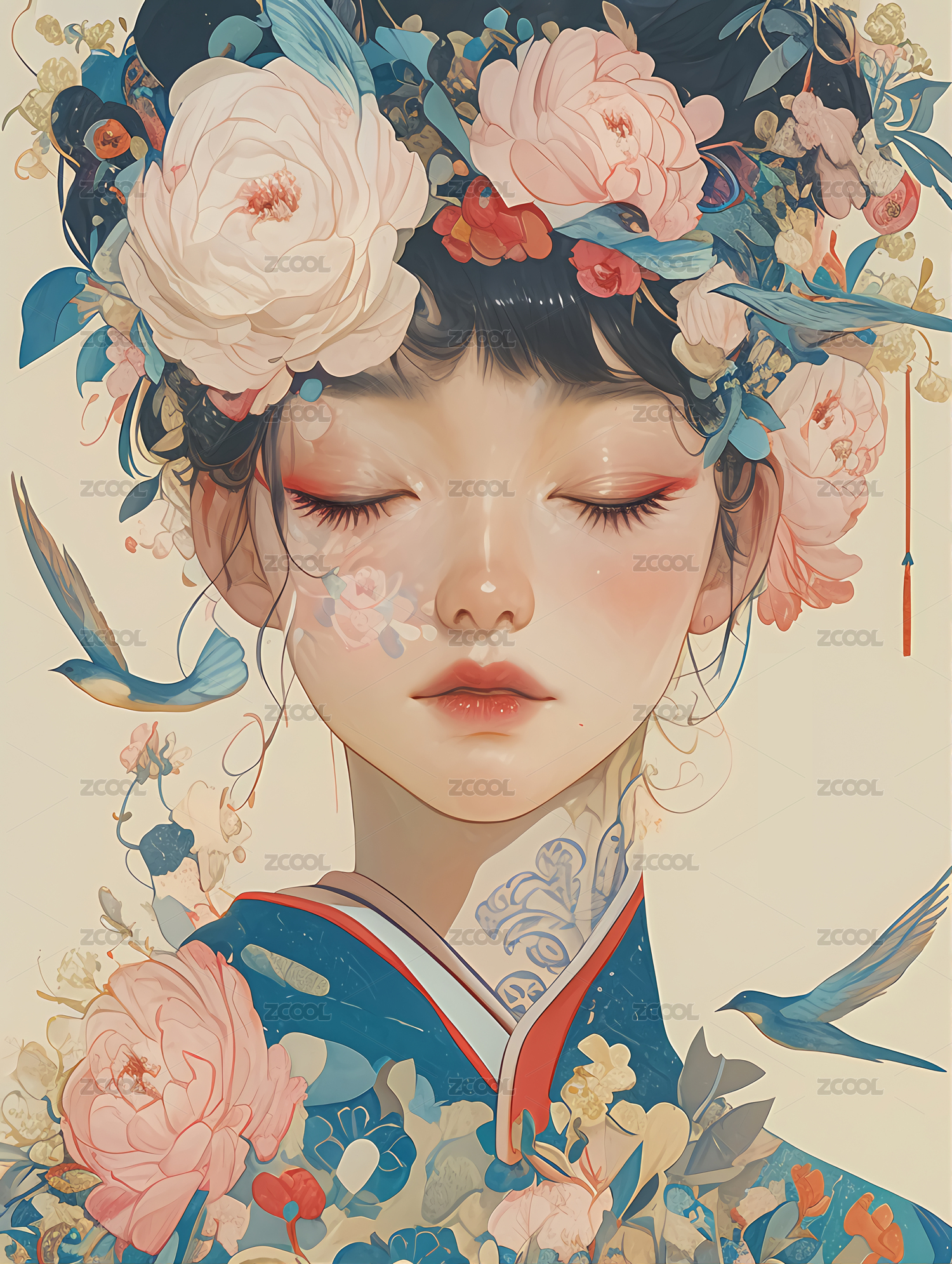 插画,背景,壁纸,头像,女孩,美女,国潮,古风,汉服,人物