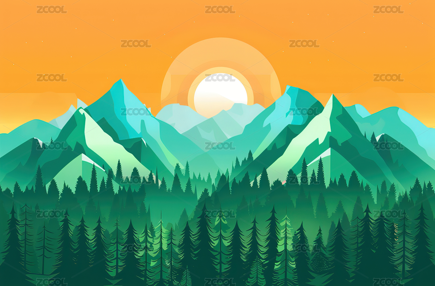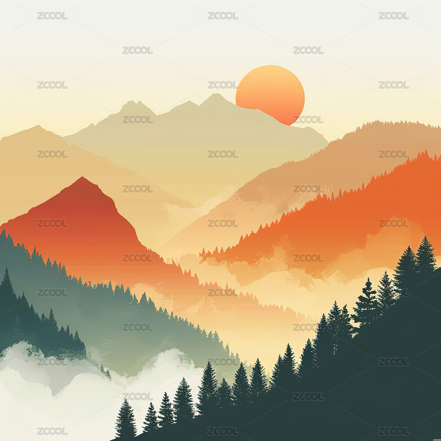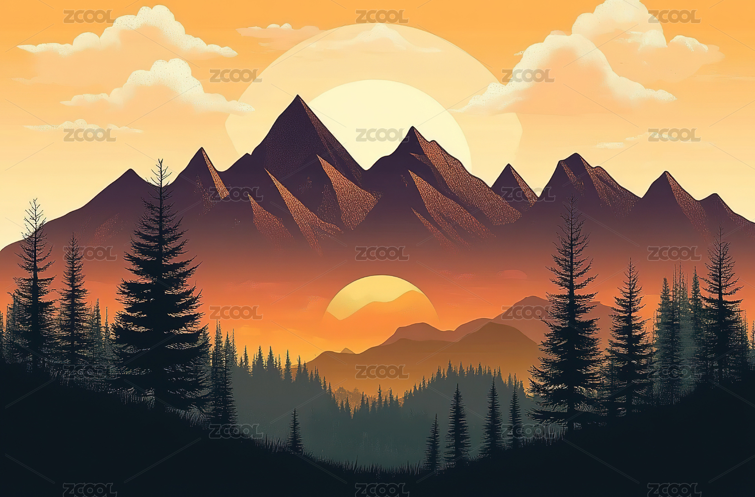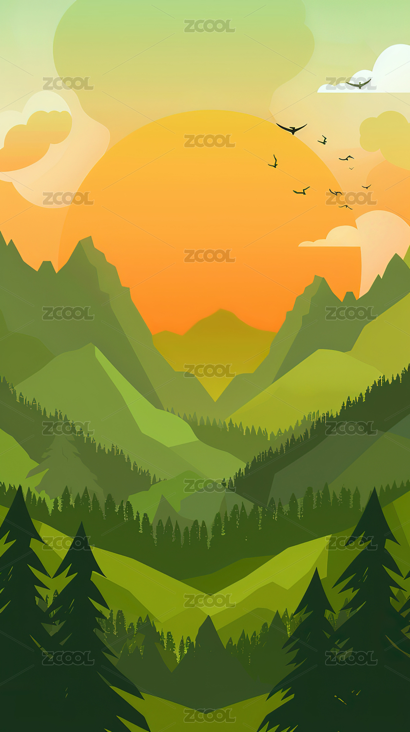 山脉落日插画