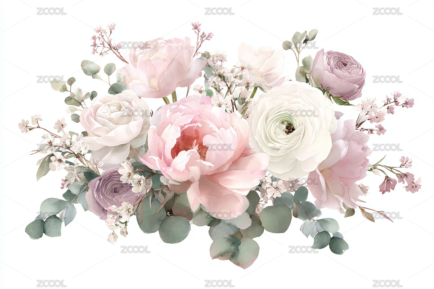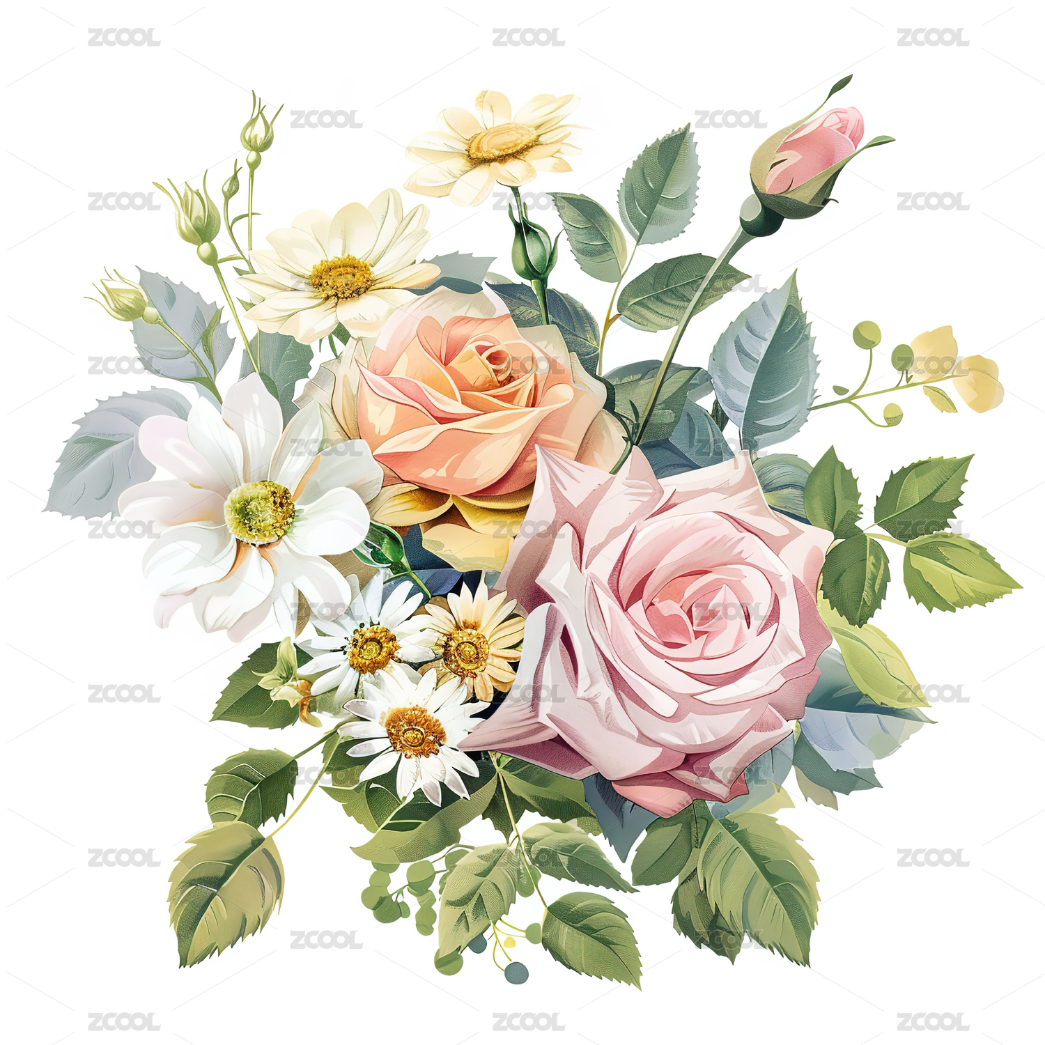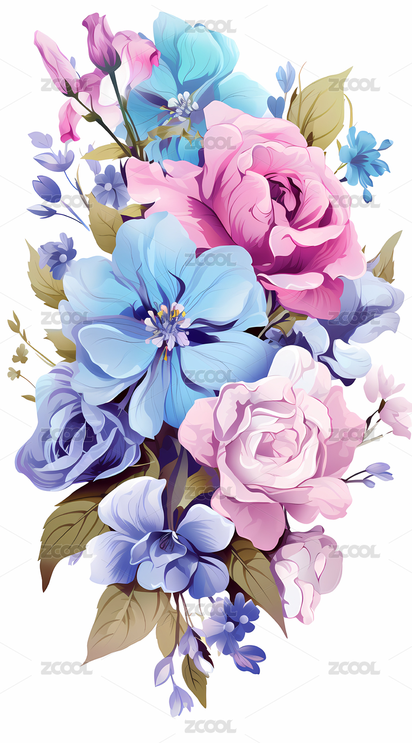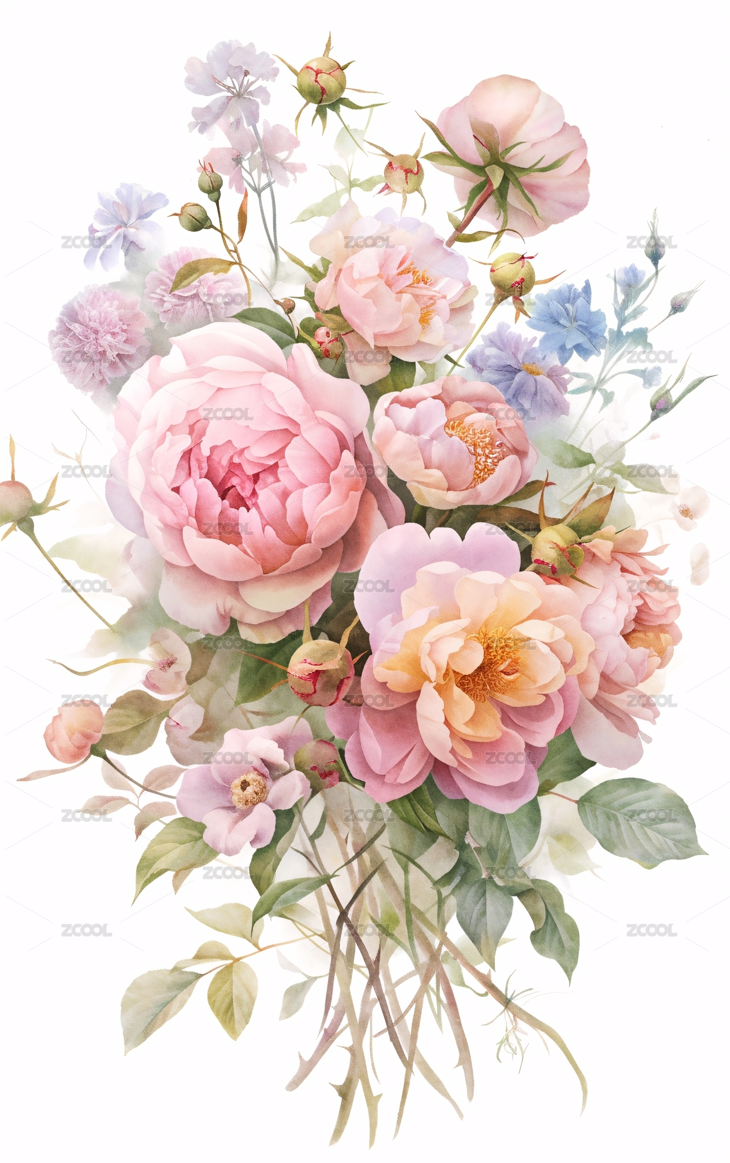 叶片,清新,自然,花束,粉花,蓝花,黄花,牡丹,玫瑰,小花