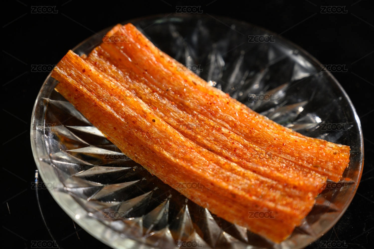 桌面上的盘子里的美味可口的大辣条