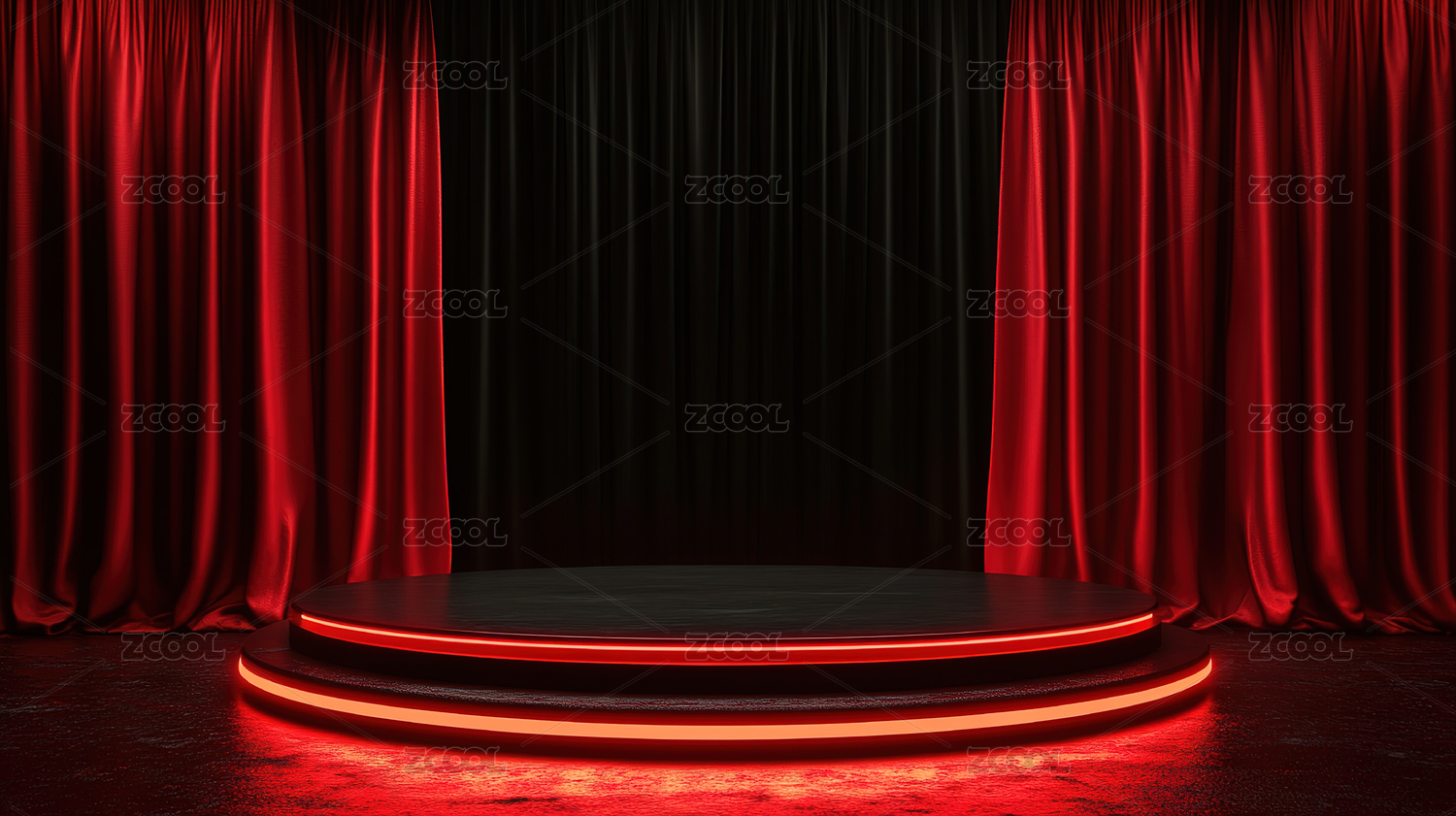 红色舞台幕布和圆形平台