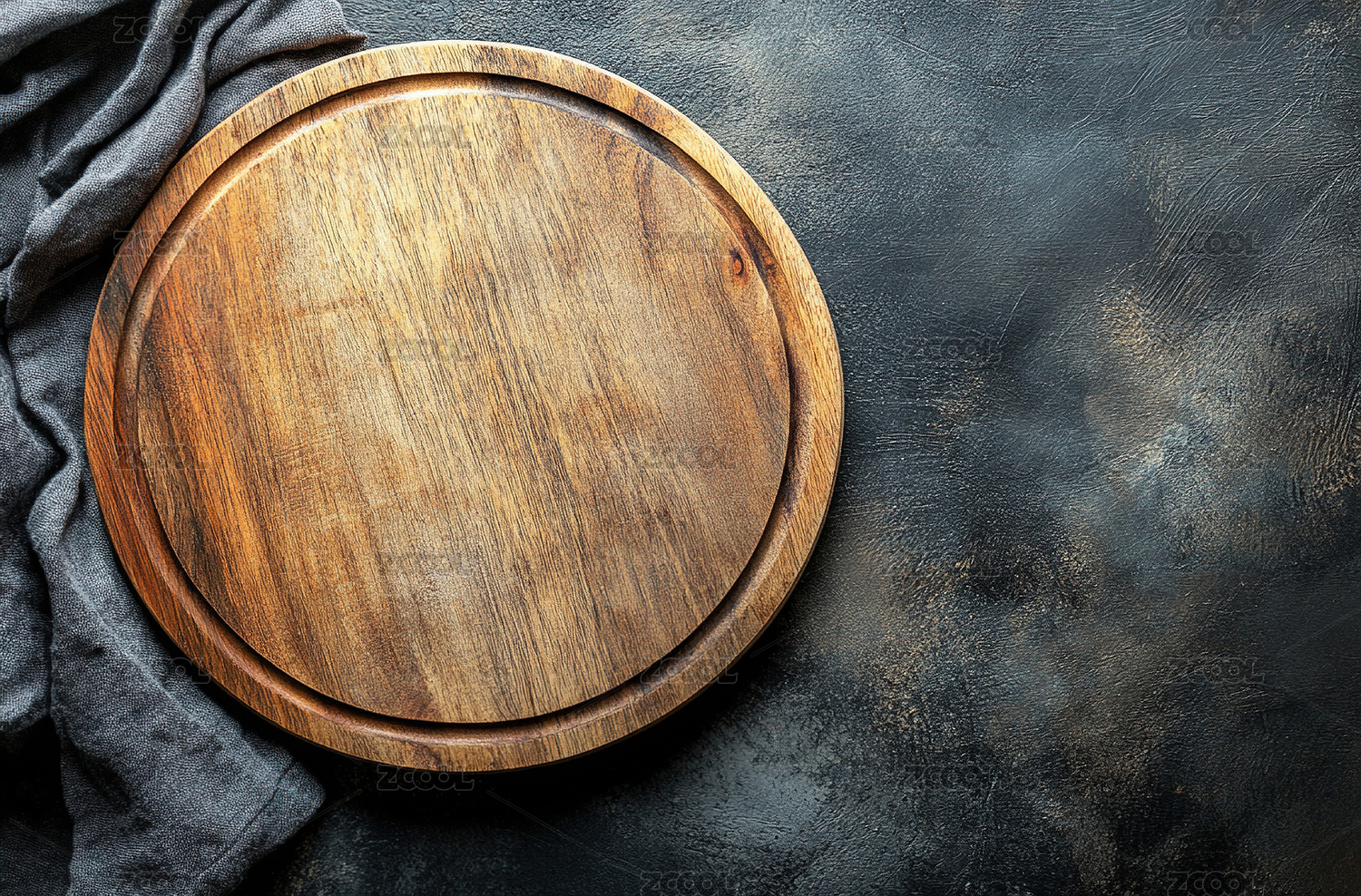 手工黑胡桃木木砧板在暗调背景上。胡桃木木