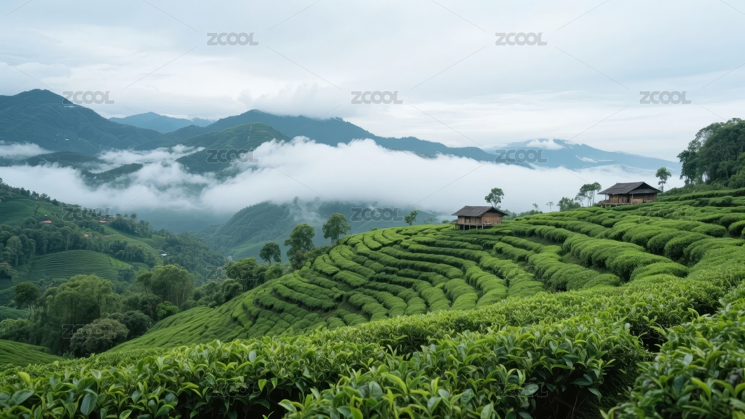 云雾缭绕的茶园梯田