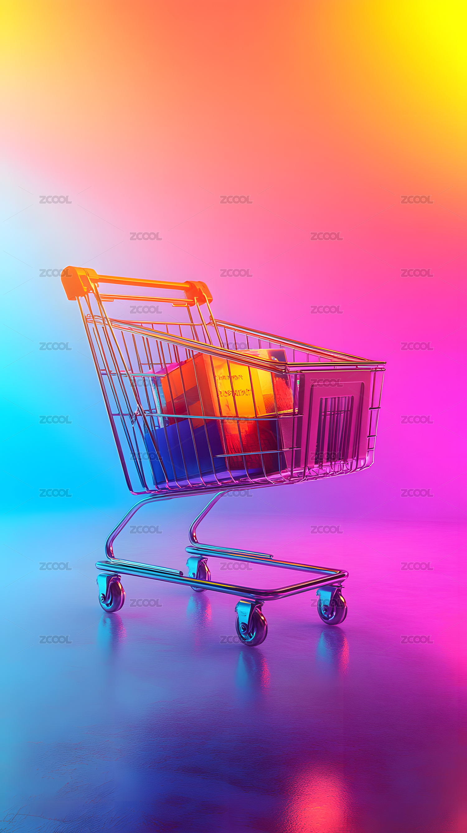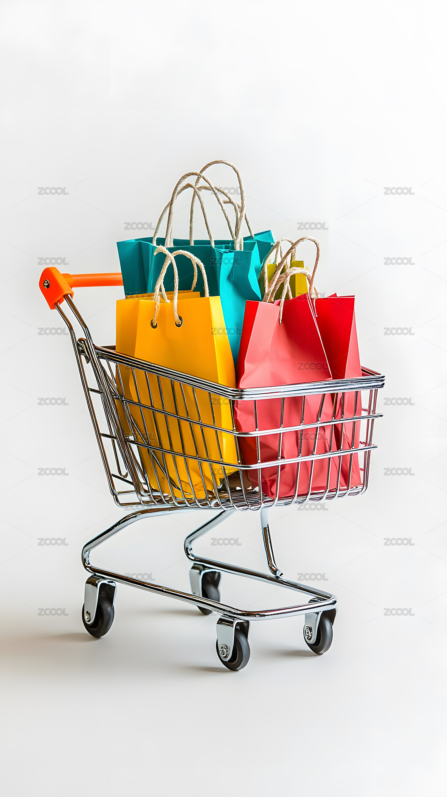彩色购物袋购物小车图片