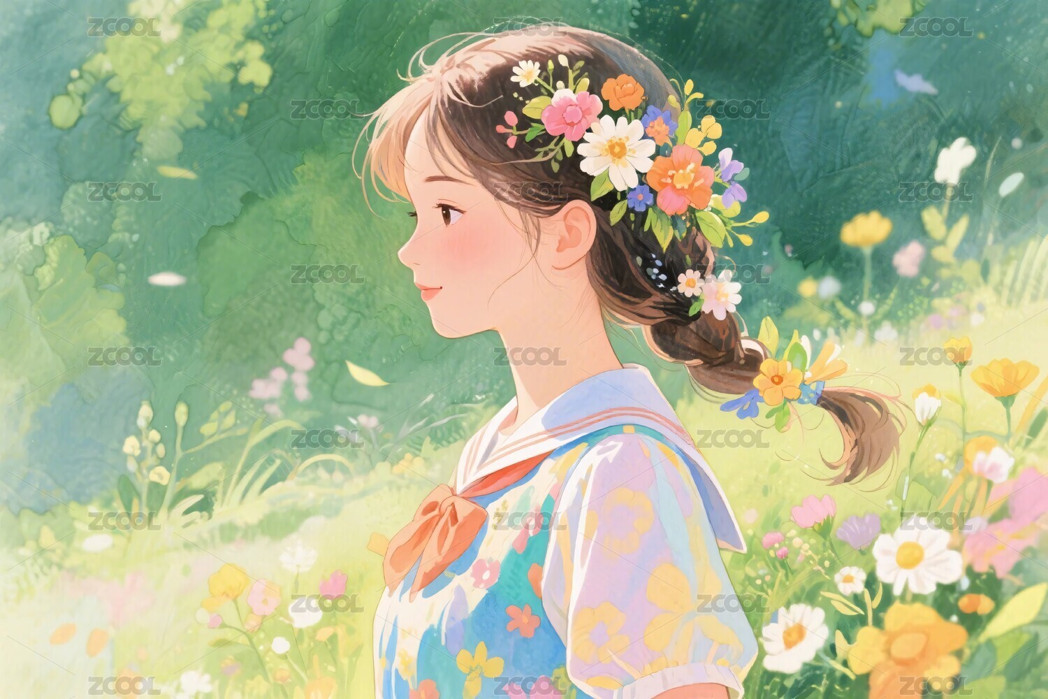 背景, 梦幻,少女, 清新, 阳光, 静谧, 春天, 田园, 花田, 蝴蝶