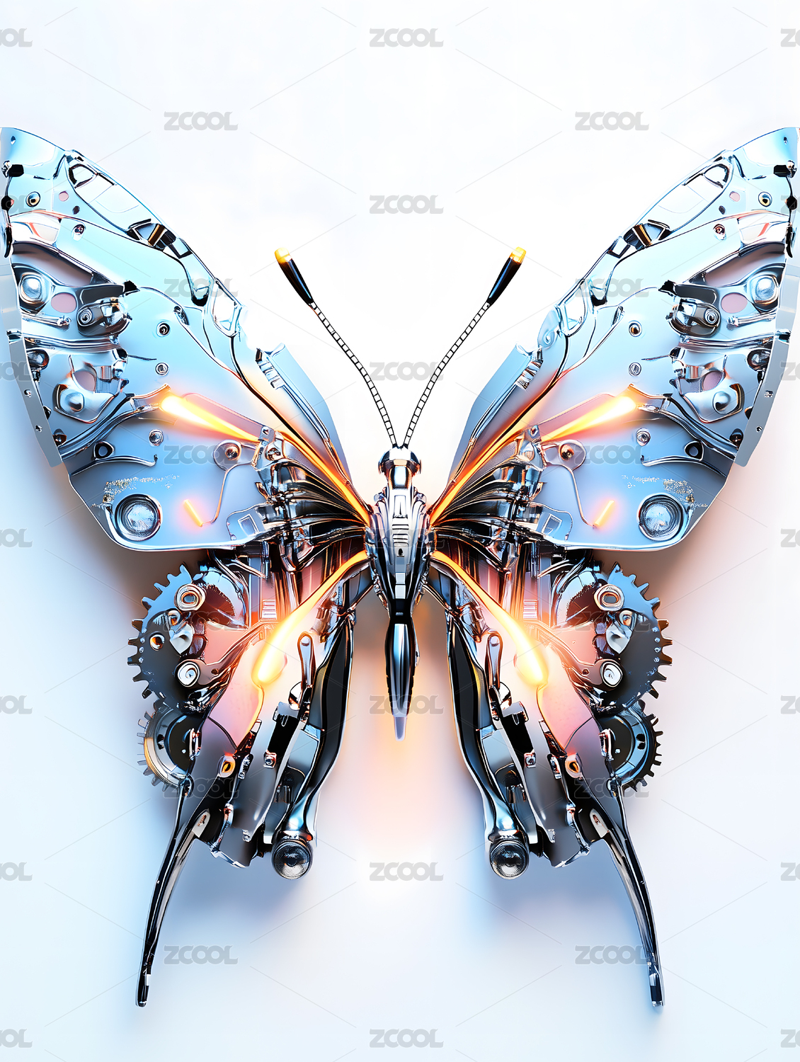 橙粉渐变蝴蝶与纸质层叠效果的艺术质感画面