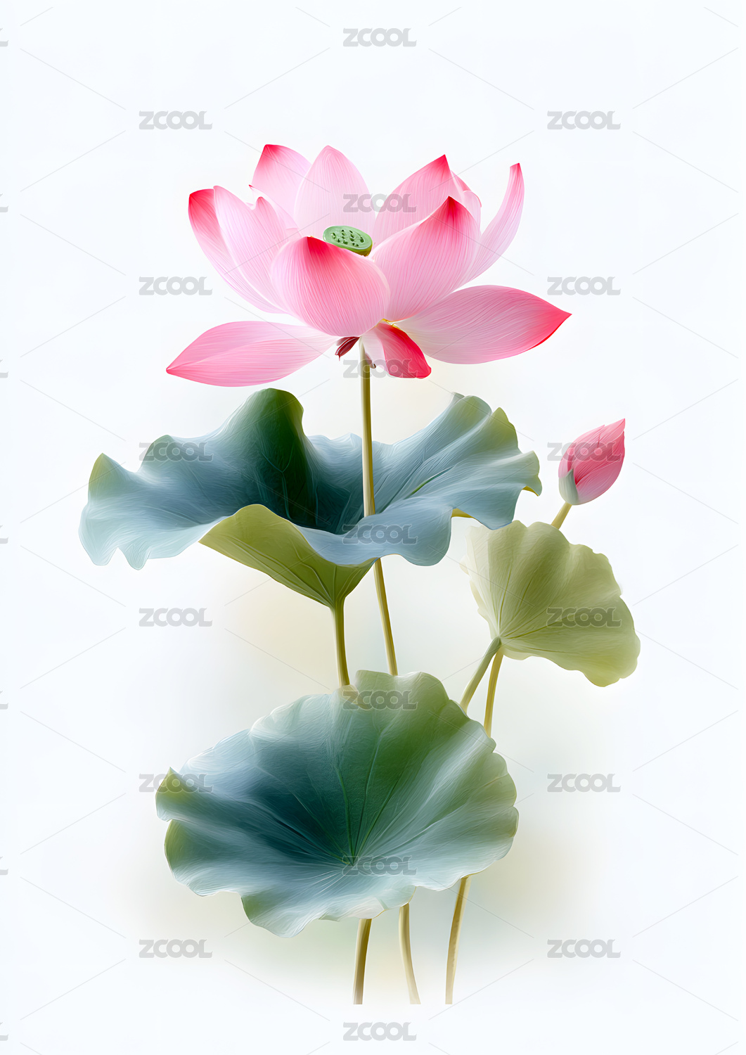 白底背景上一株荷花