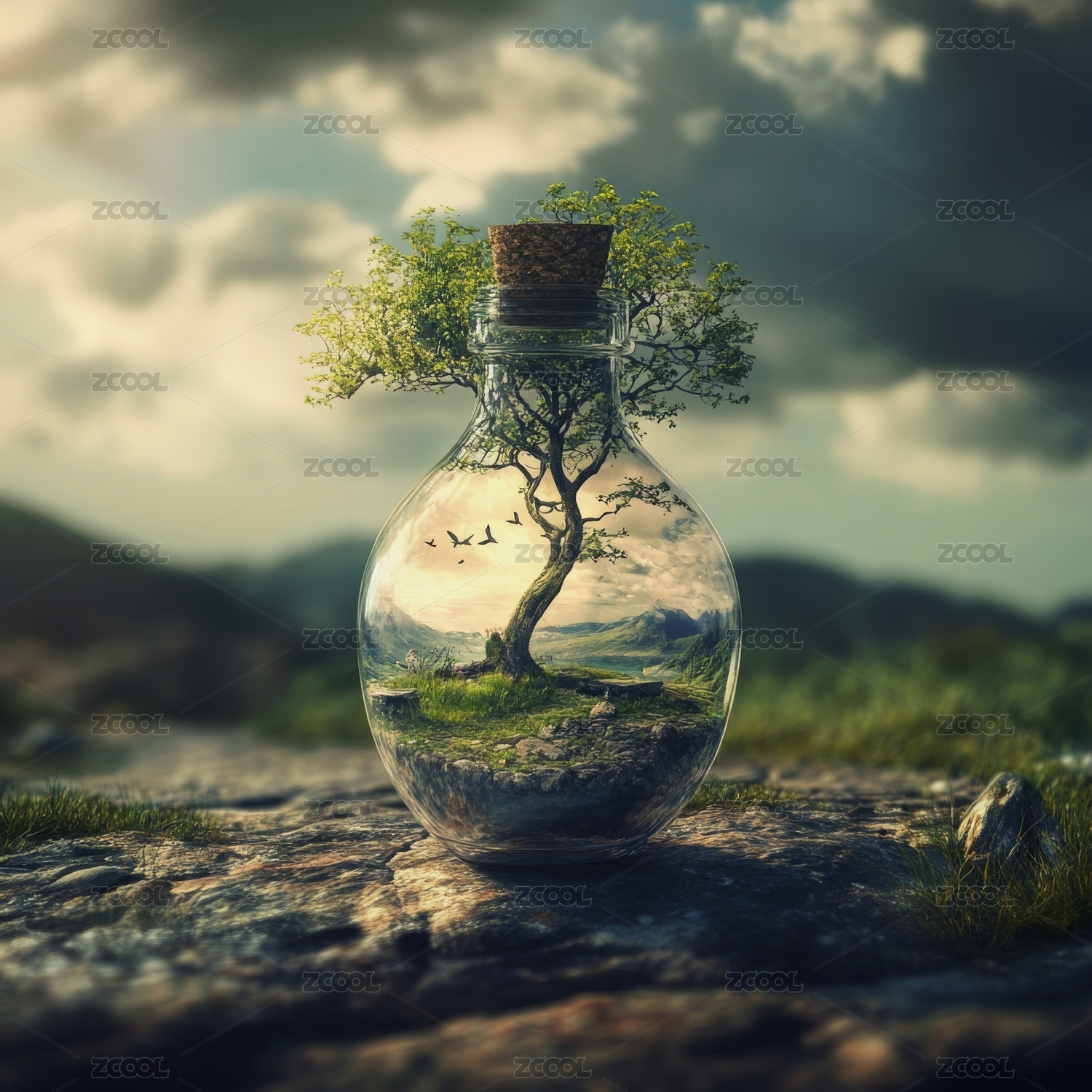 玻璃瓶,瓶子,透明,风景,风光,自然,微缩景观,唯美,壁纸,背景
