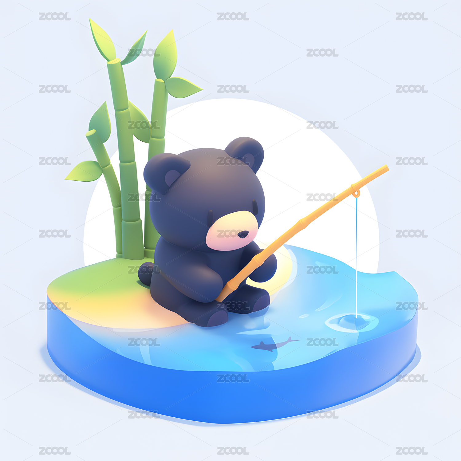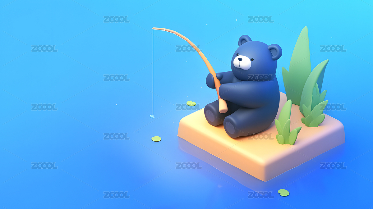 钓鱼池的小熊