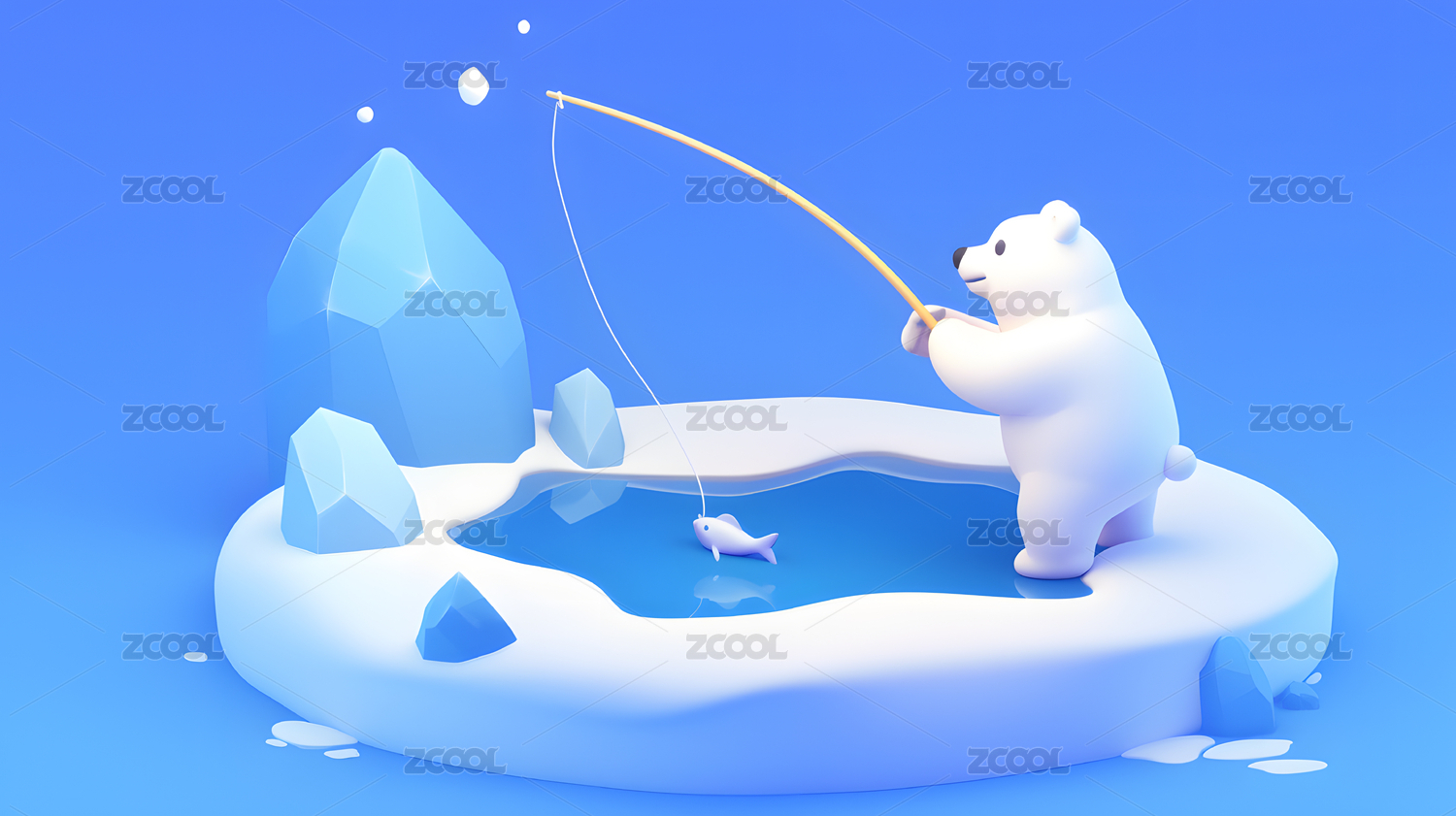 北极熊钓鱼