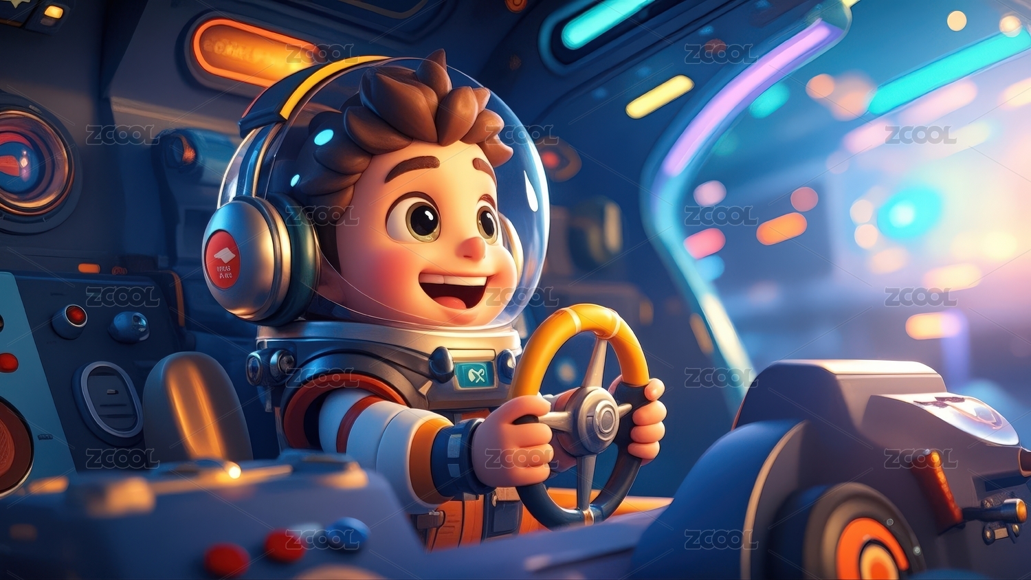 未来, 卡通, 科幻, 可爱, 紫色,太空, 宇航员, 少女, 3D, 星星
