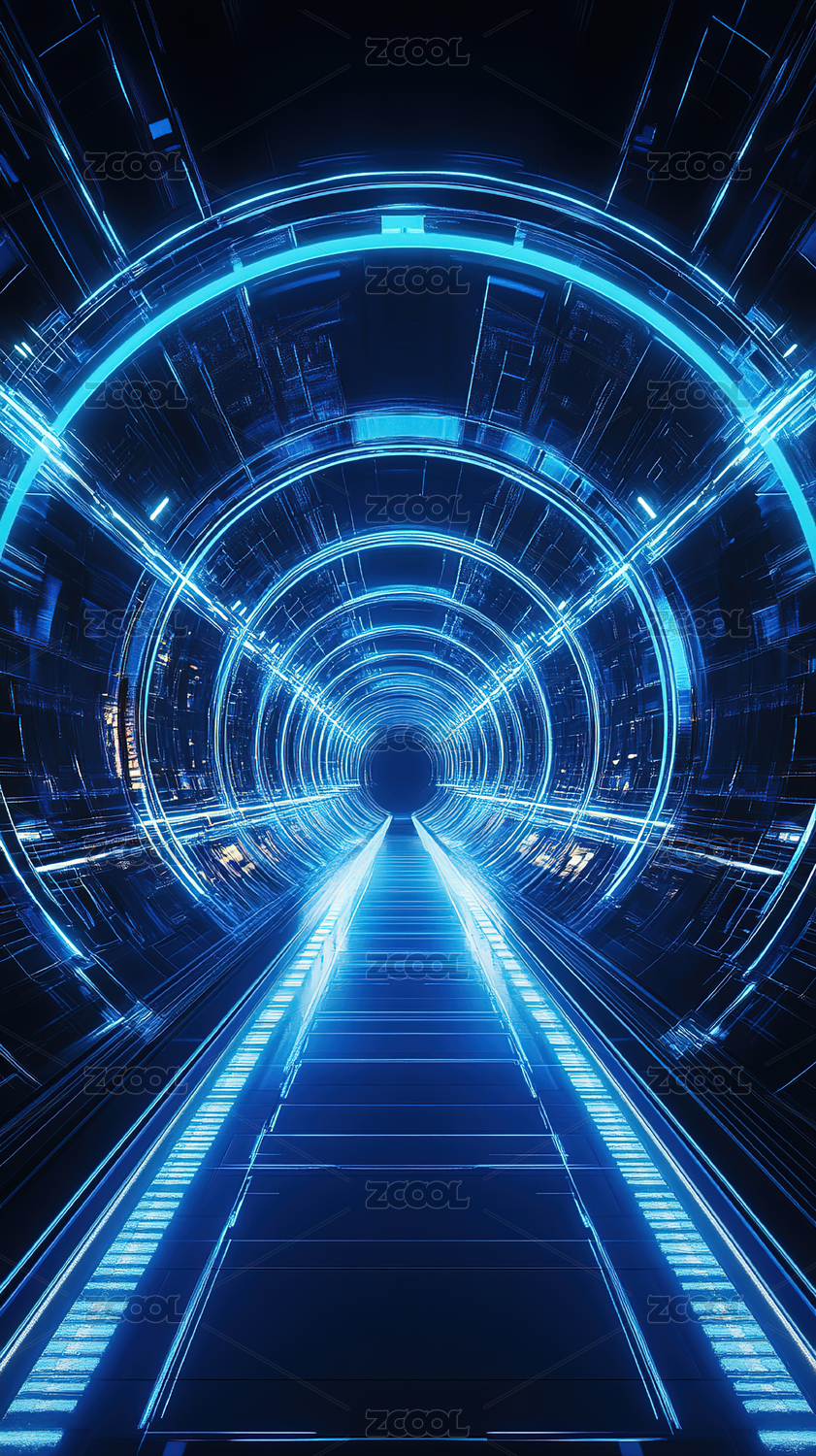 未来感蓝色霓虹隧道