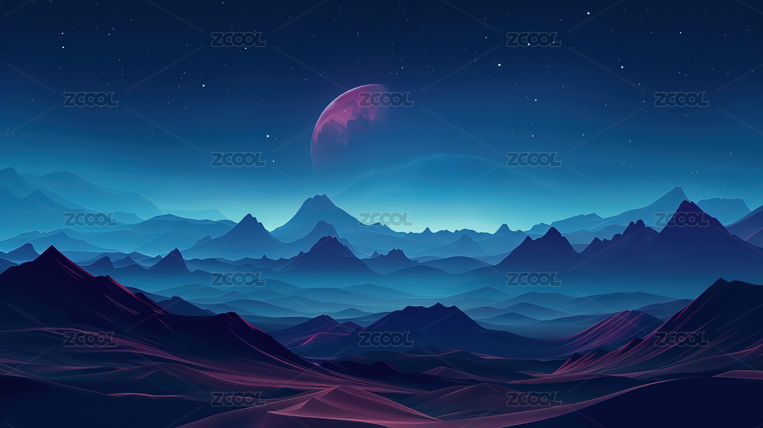 紫色沙漠星空下的山脉