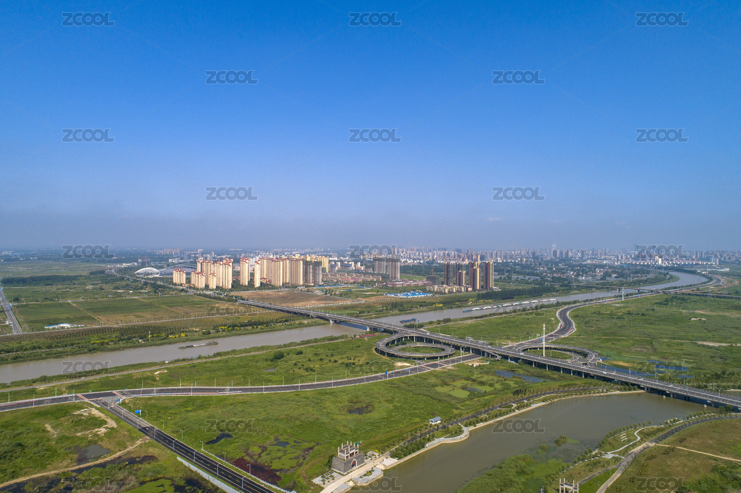 航拍,公路,田园,农田,河流,蓝天,白云,城市,交通,户外