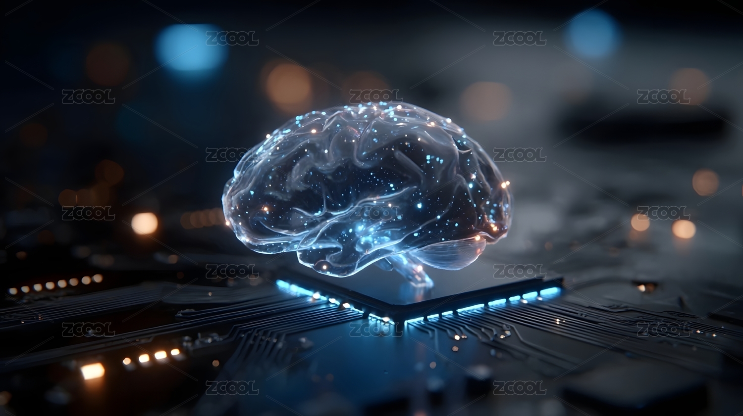 大脑,电路板,科技,创意,设计,背景,芯片,蓝色,神经元,红点