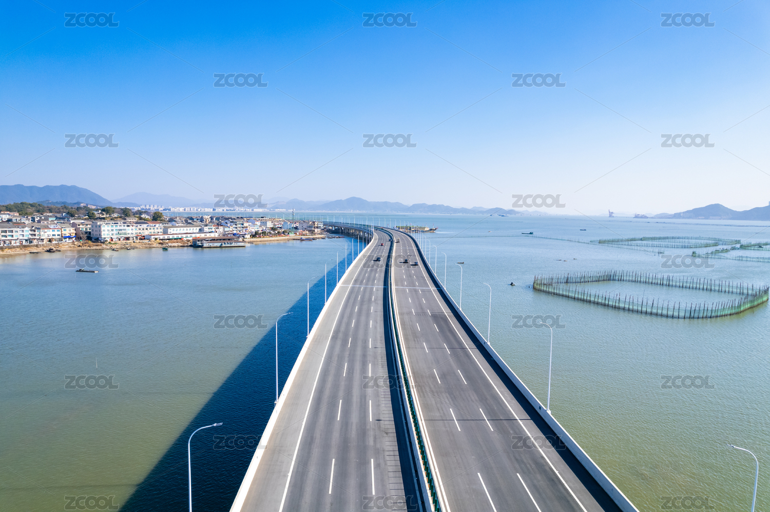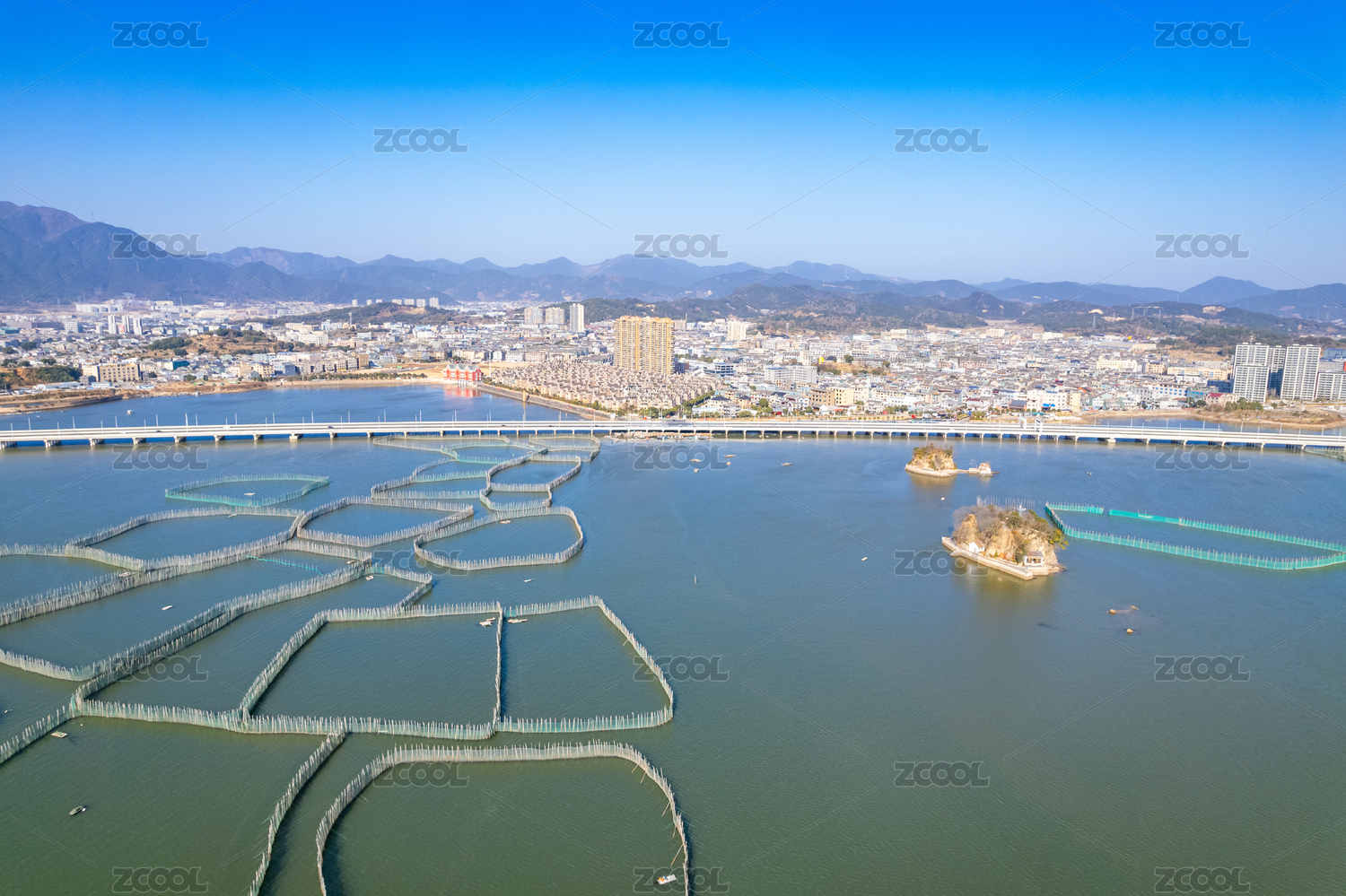 宁波宁海西店海上公路与城镇建筑航拍风景