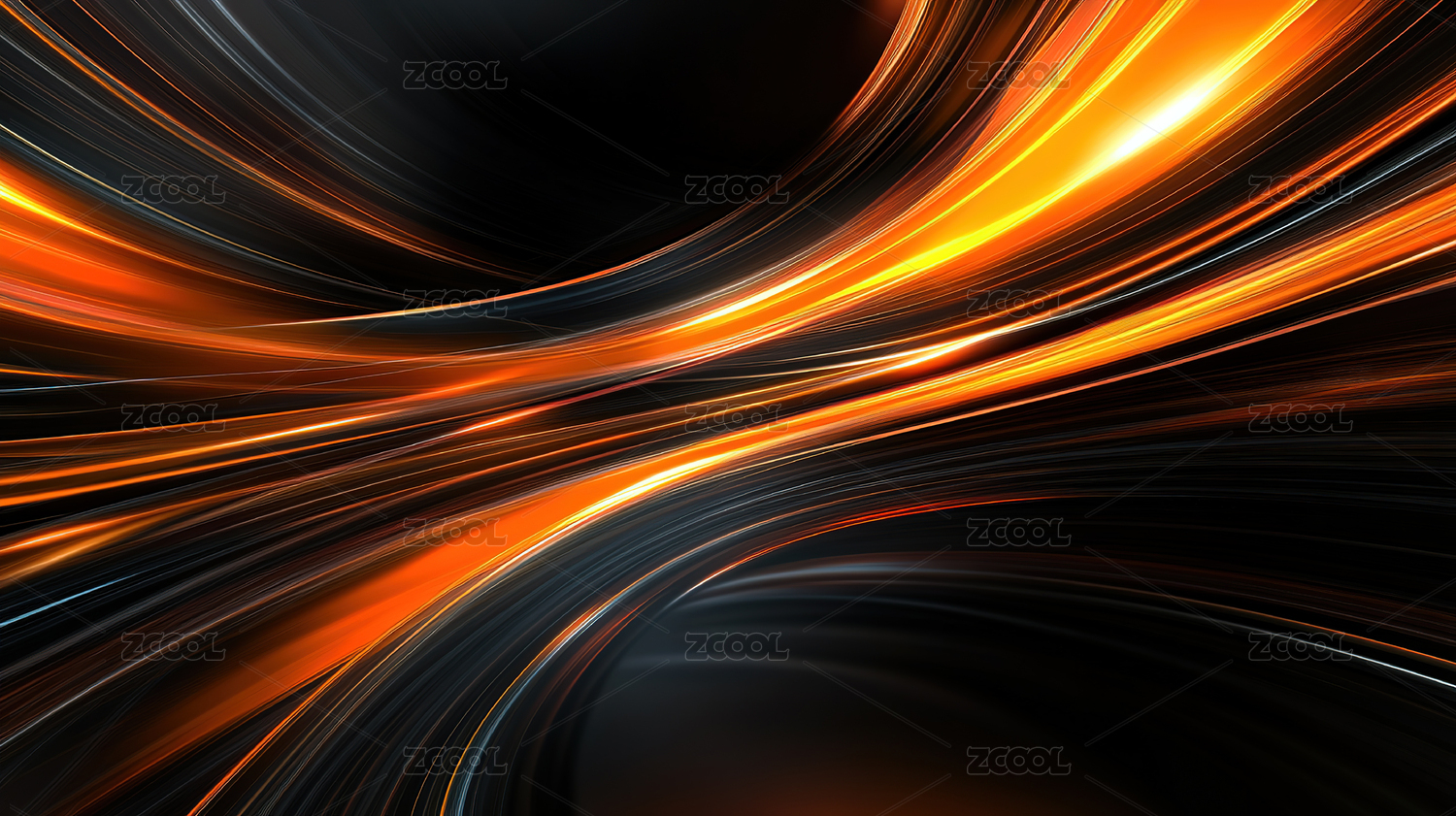 数码科技黑橘色波浪曲线抽象海报网页背景