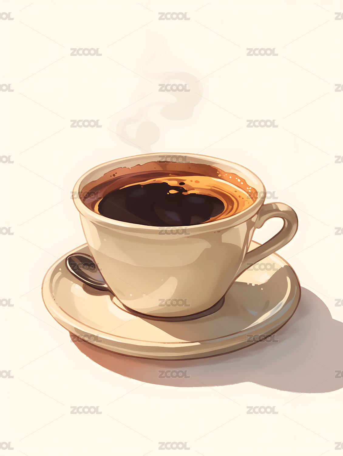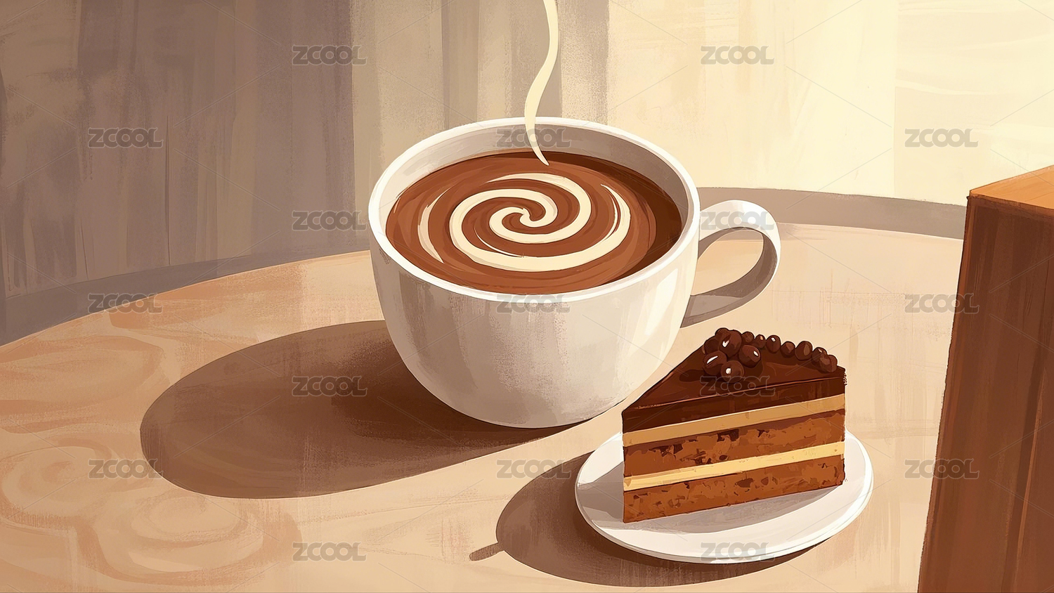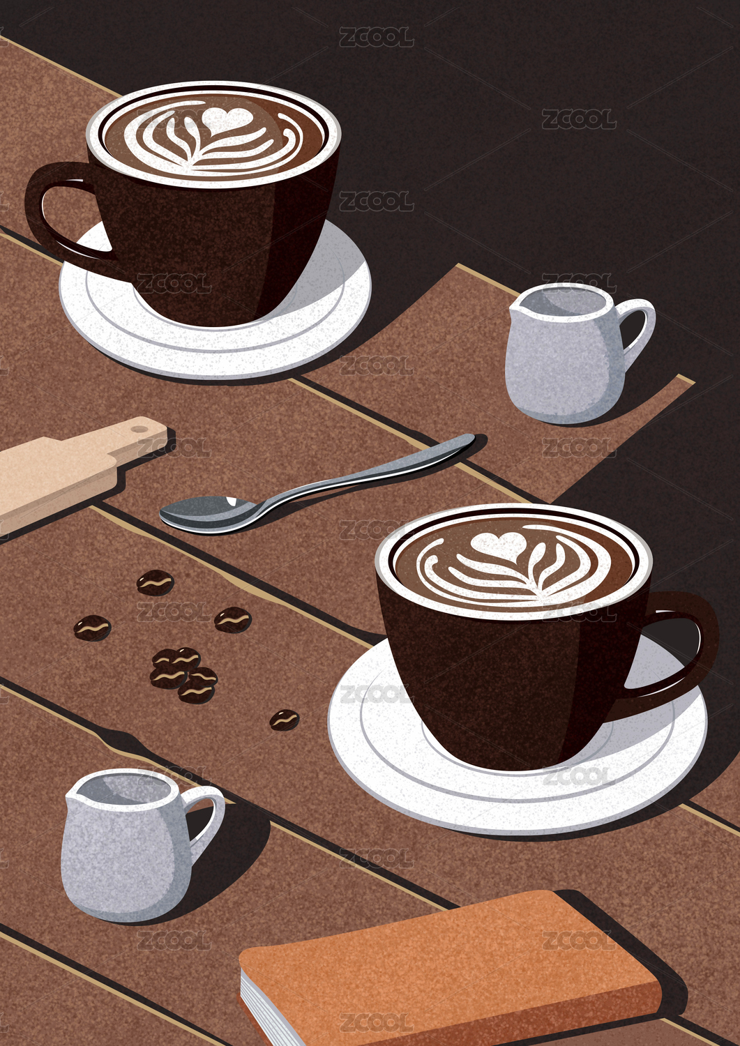 桌面上杯中的咖啡奶茶3D卡通食品插画