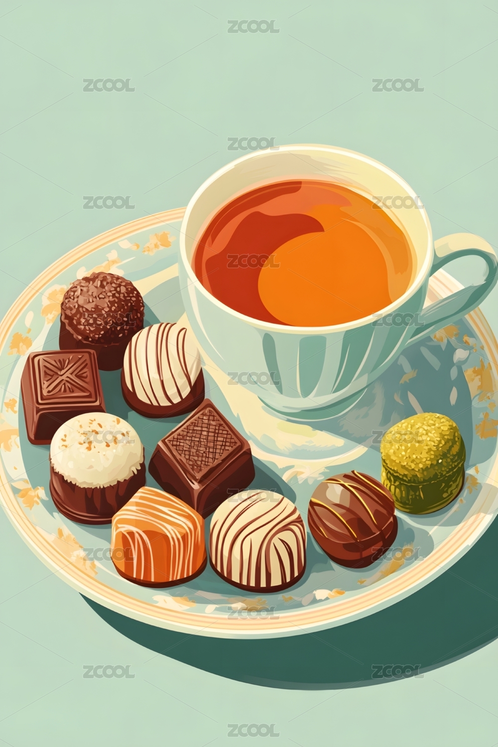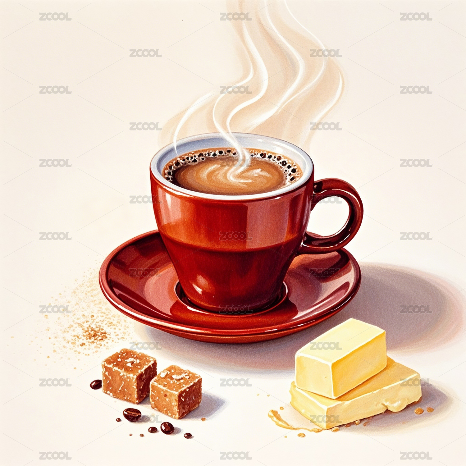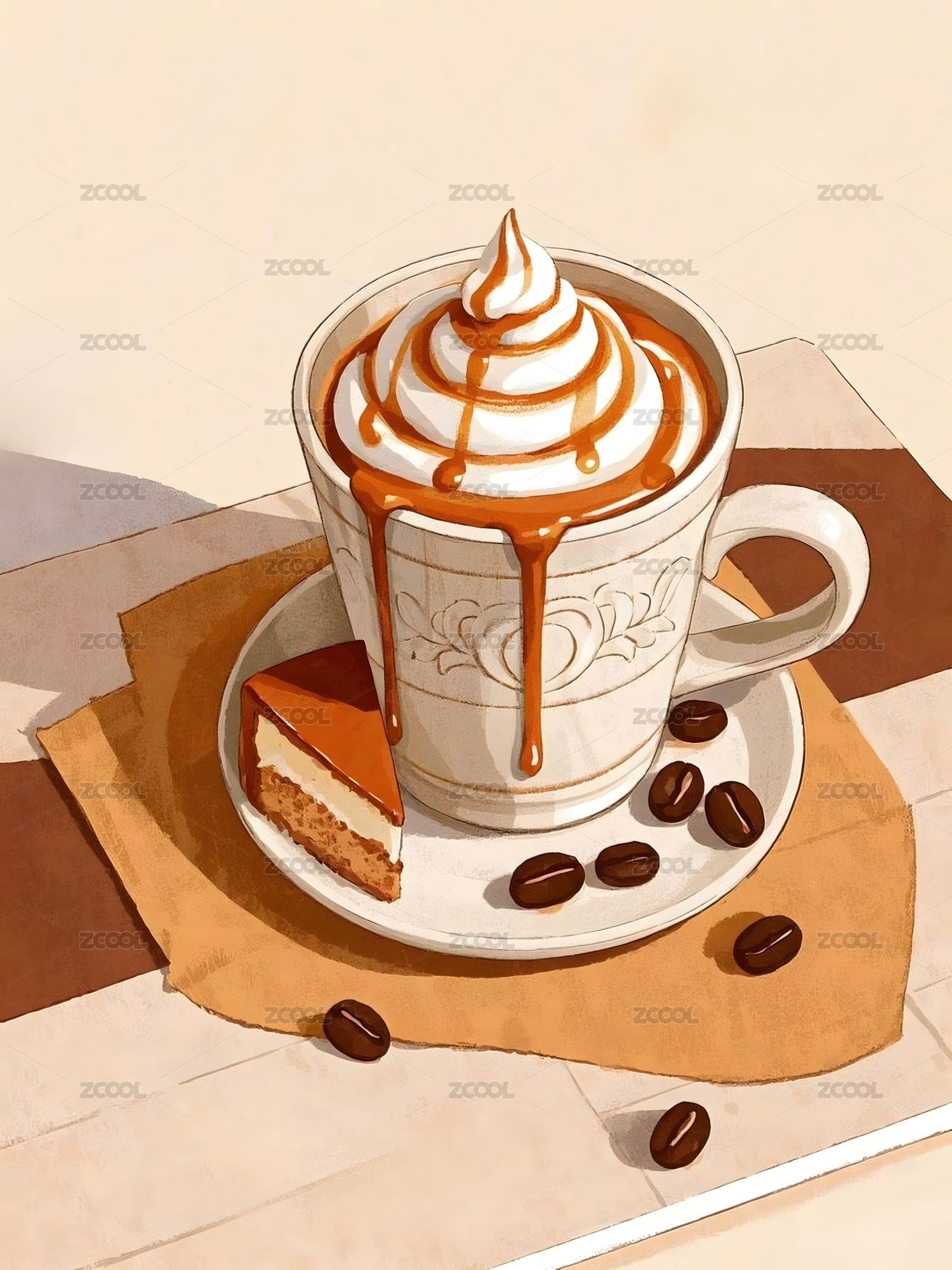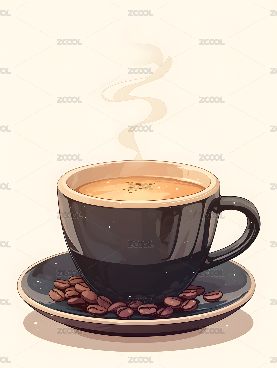 桌面上杯中的咖啡奶茶3D卡通食品插画