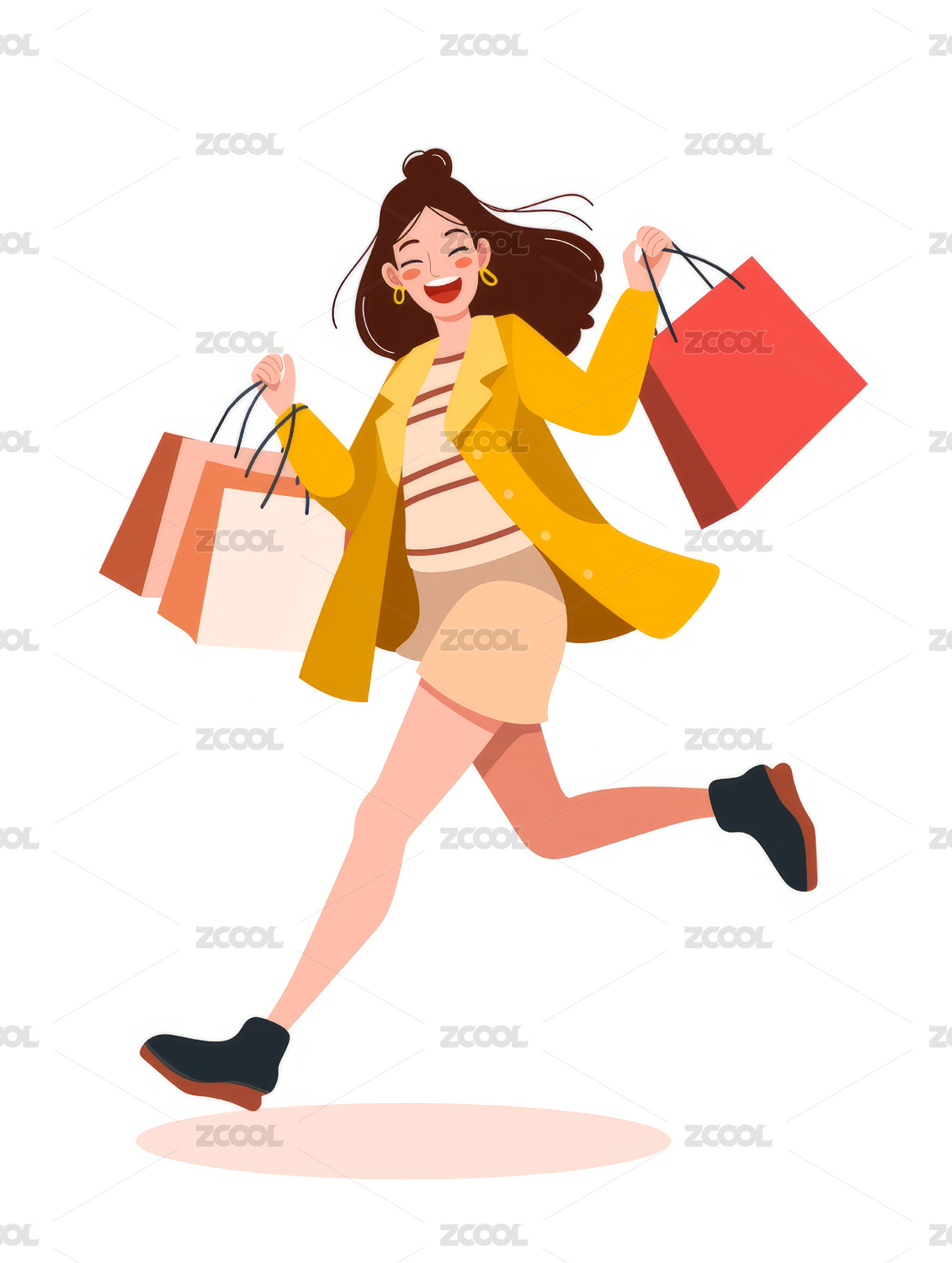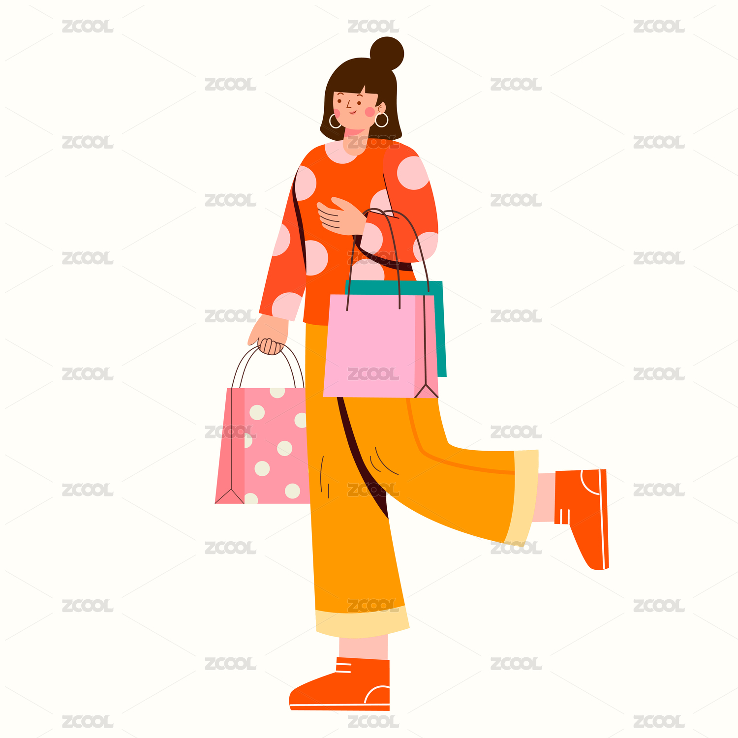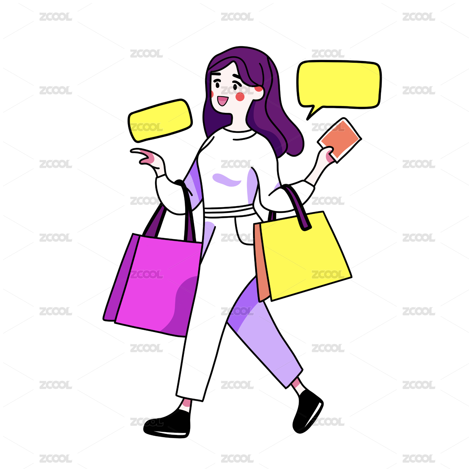 购物,逛街,购物狂,欢乐,商场,买手,购物袋,女孩,卡通,简笔画