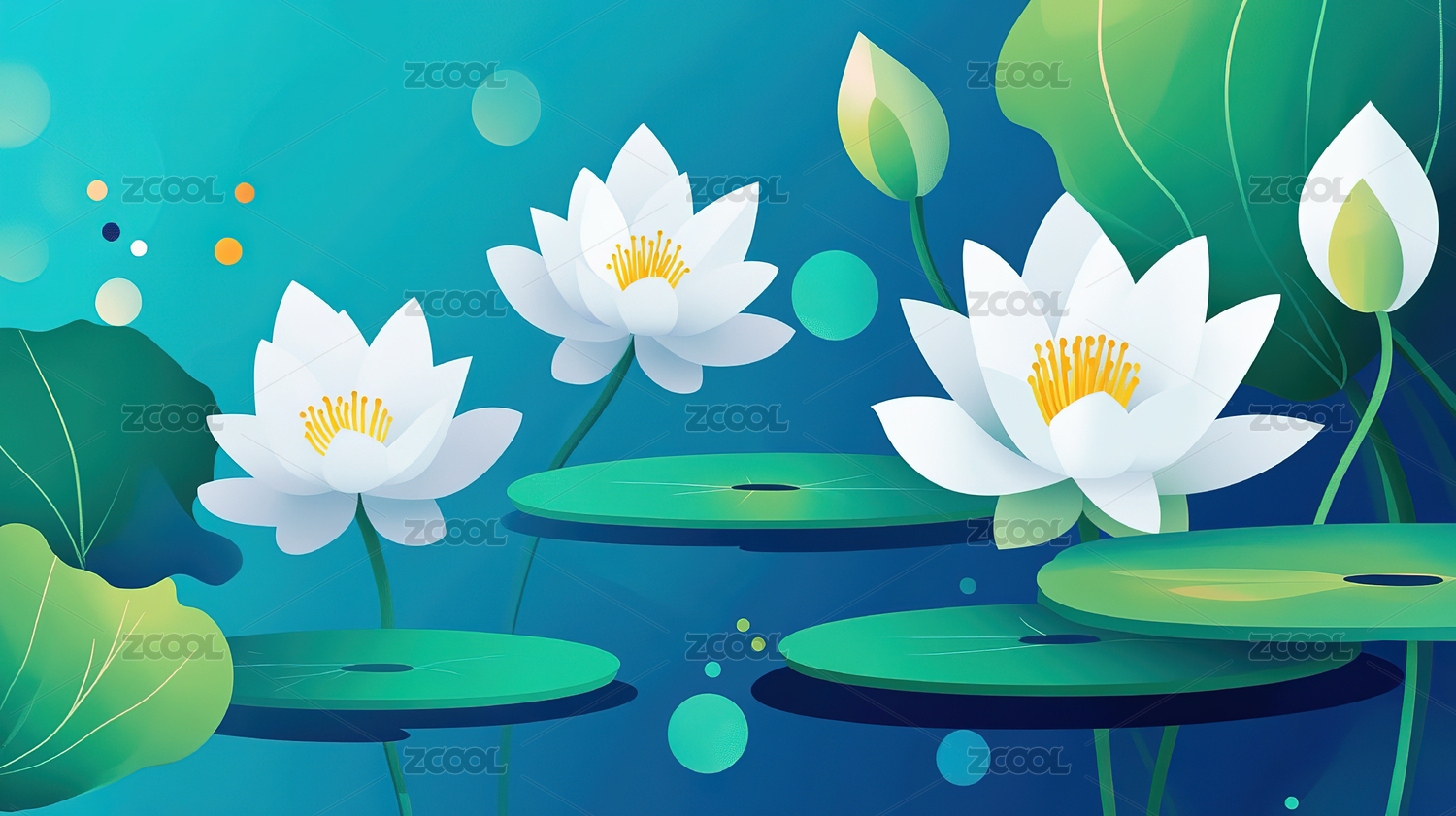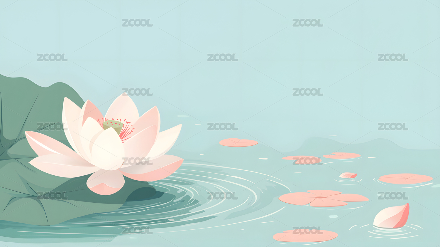 淡彩荷塘插画