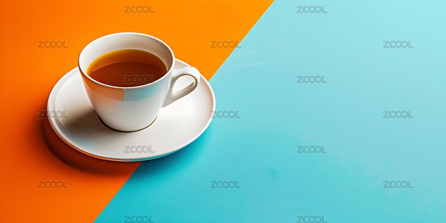 蓝色和橙色背景上的茶杯