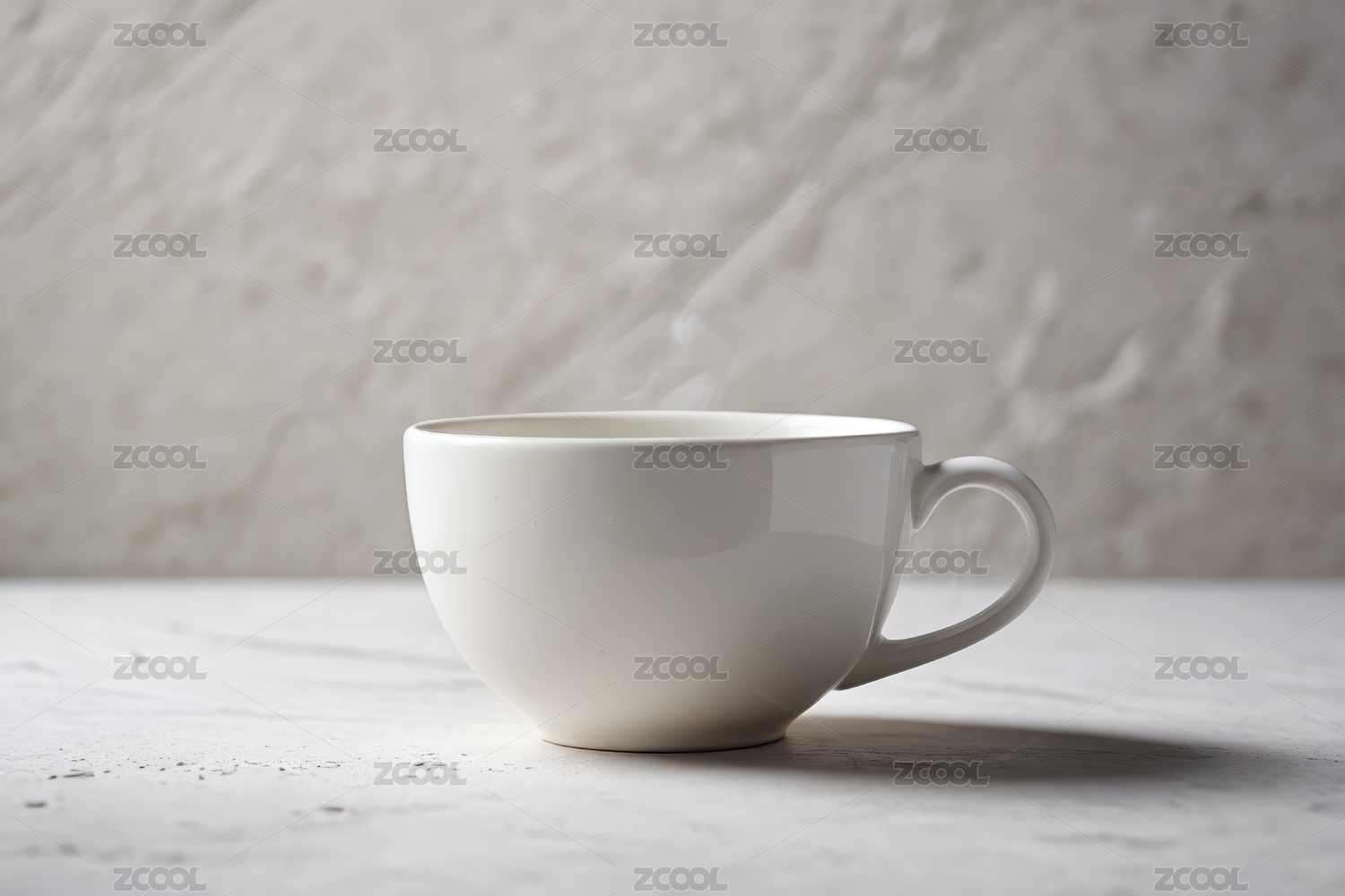 桌子上放着一个白色的杯子背景是灰色的高清