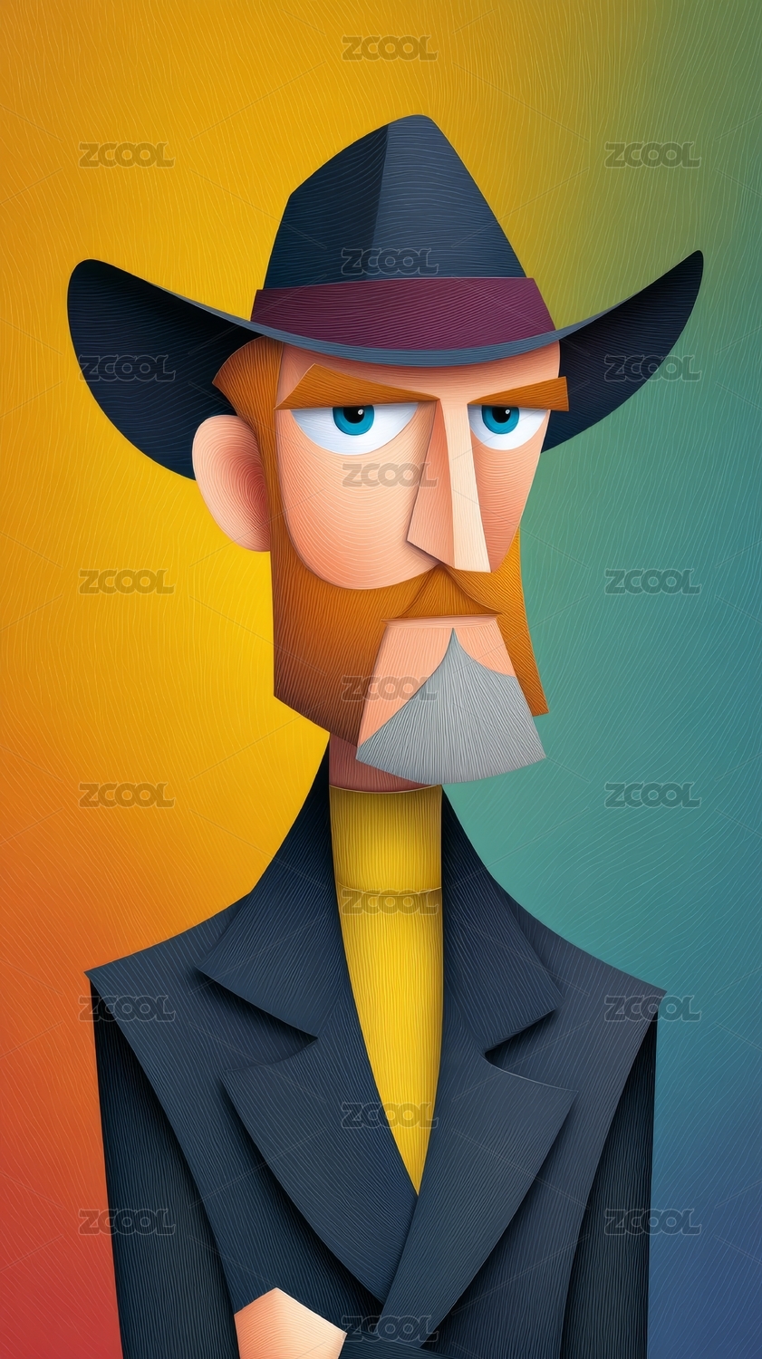 戴帽蓄须男子卡通画像