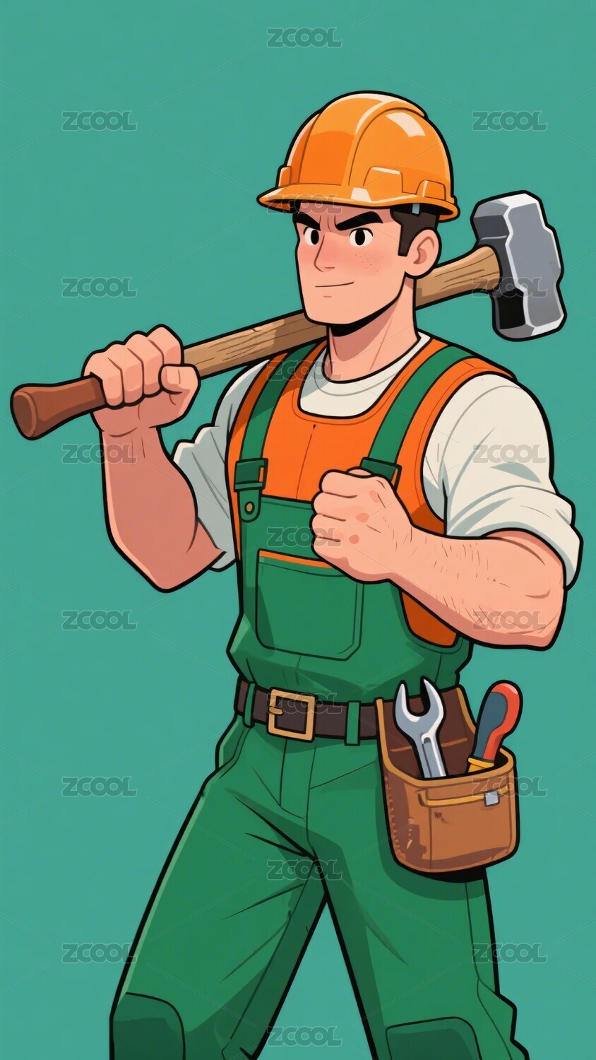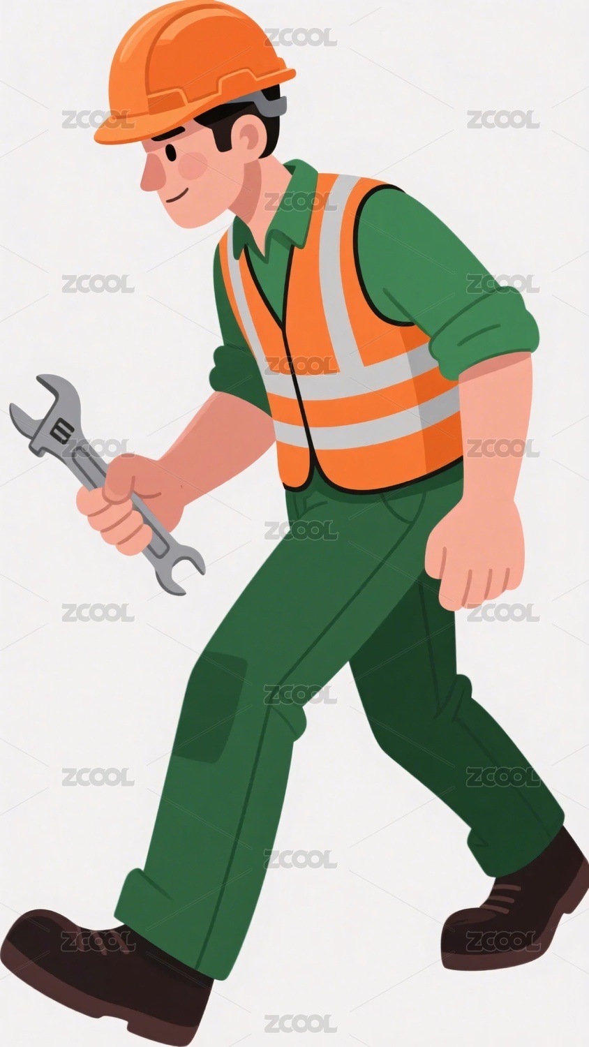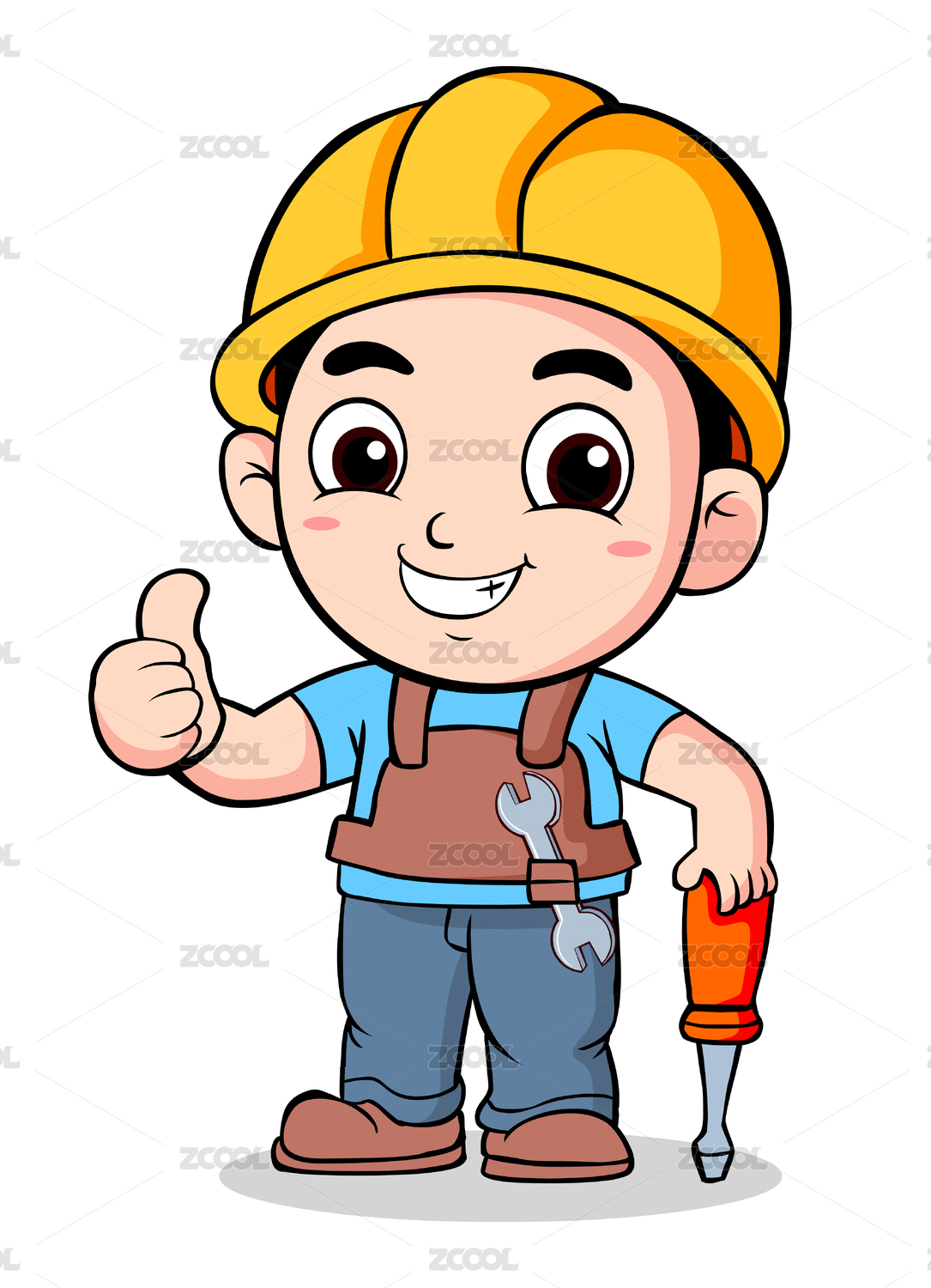 工人,黄帽,手套,扳手,工具,微笑,腰带,口袋,零件,机械