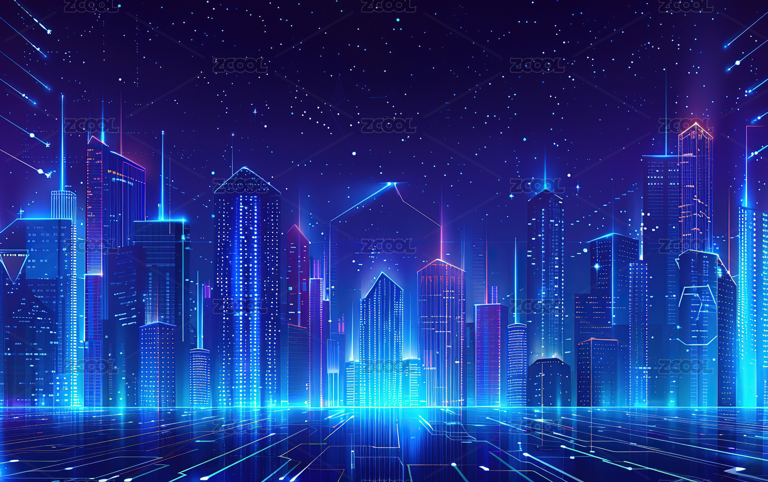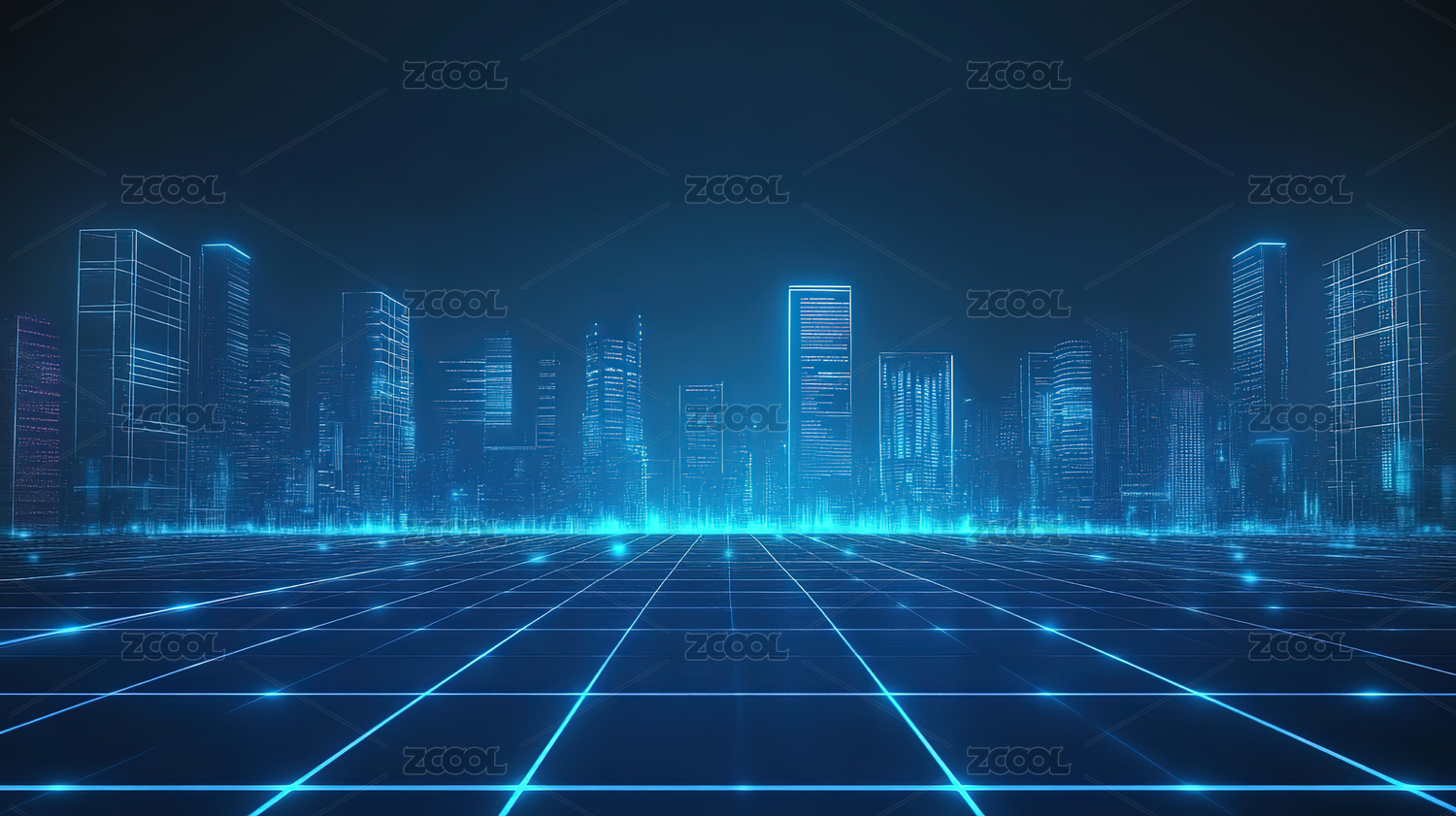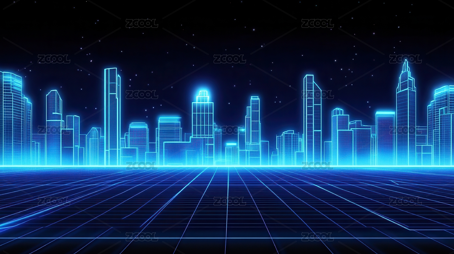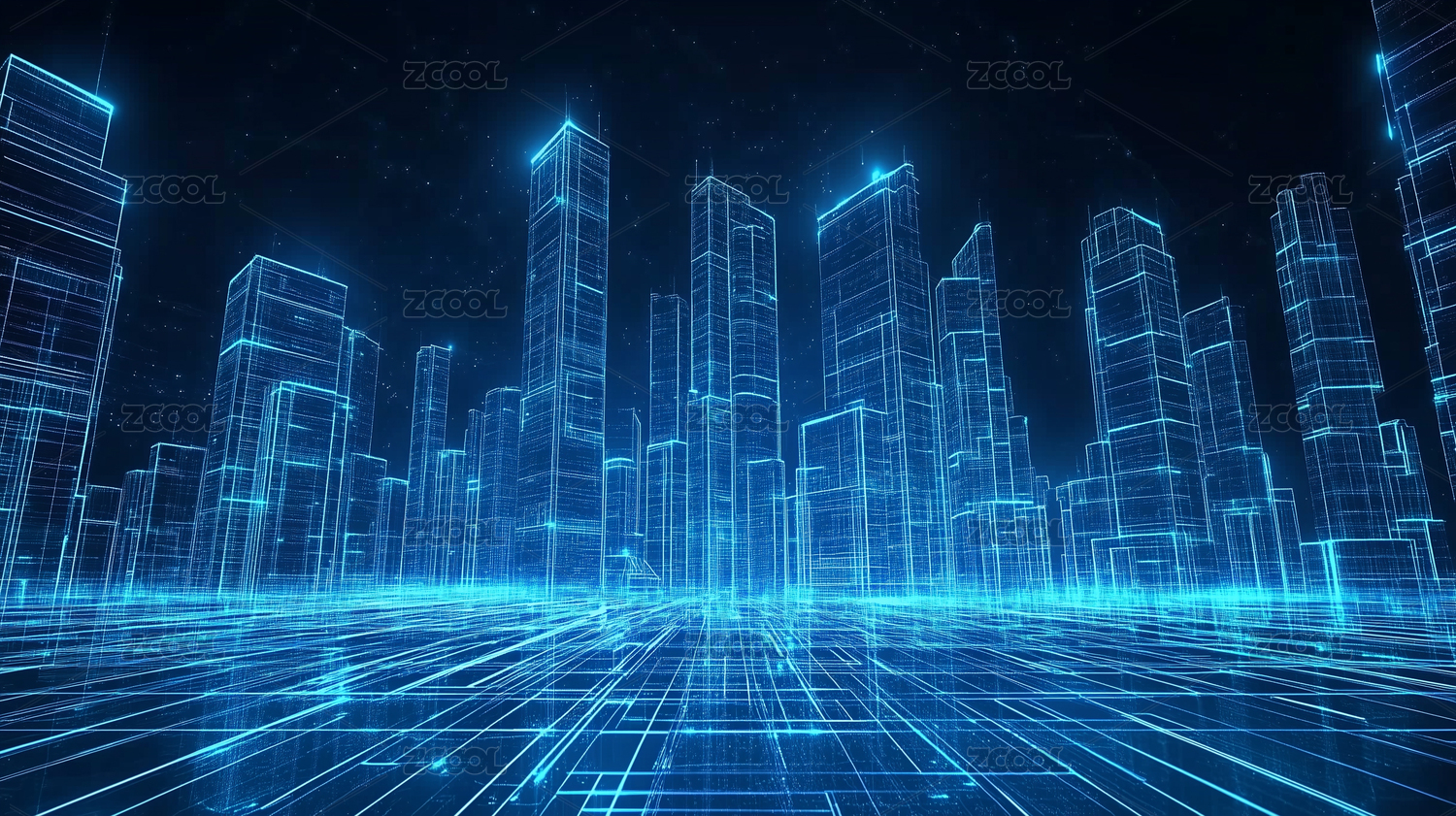 未来,都市,夜景,高层,建筑,蓝色,亮灯,科技,简洁,线条