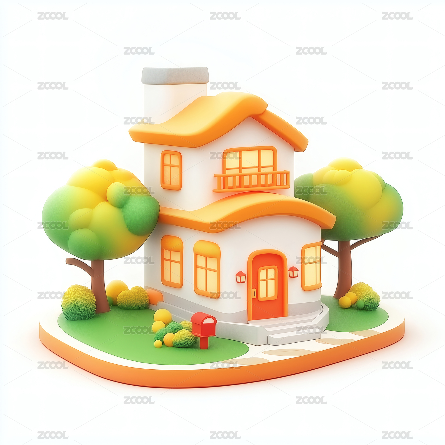 3D卡通房子建筑插画