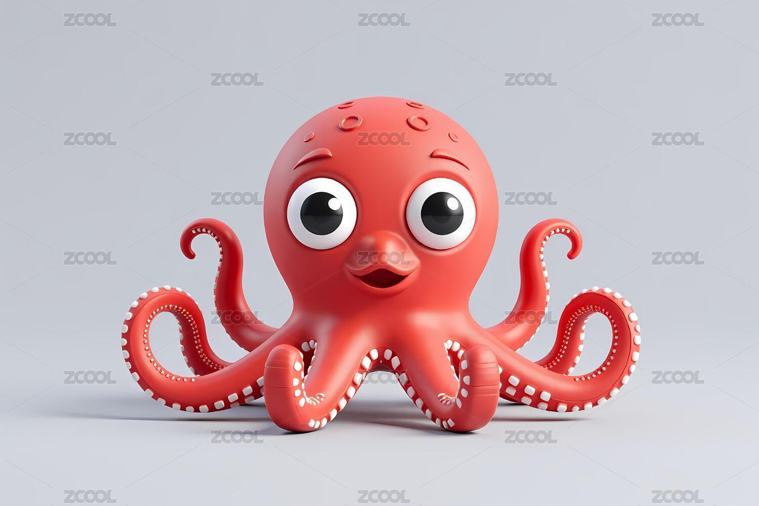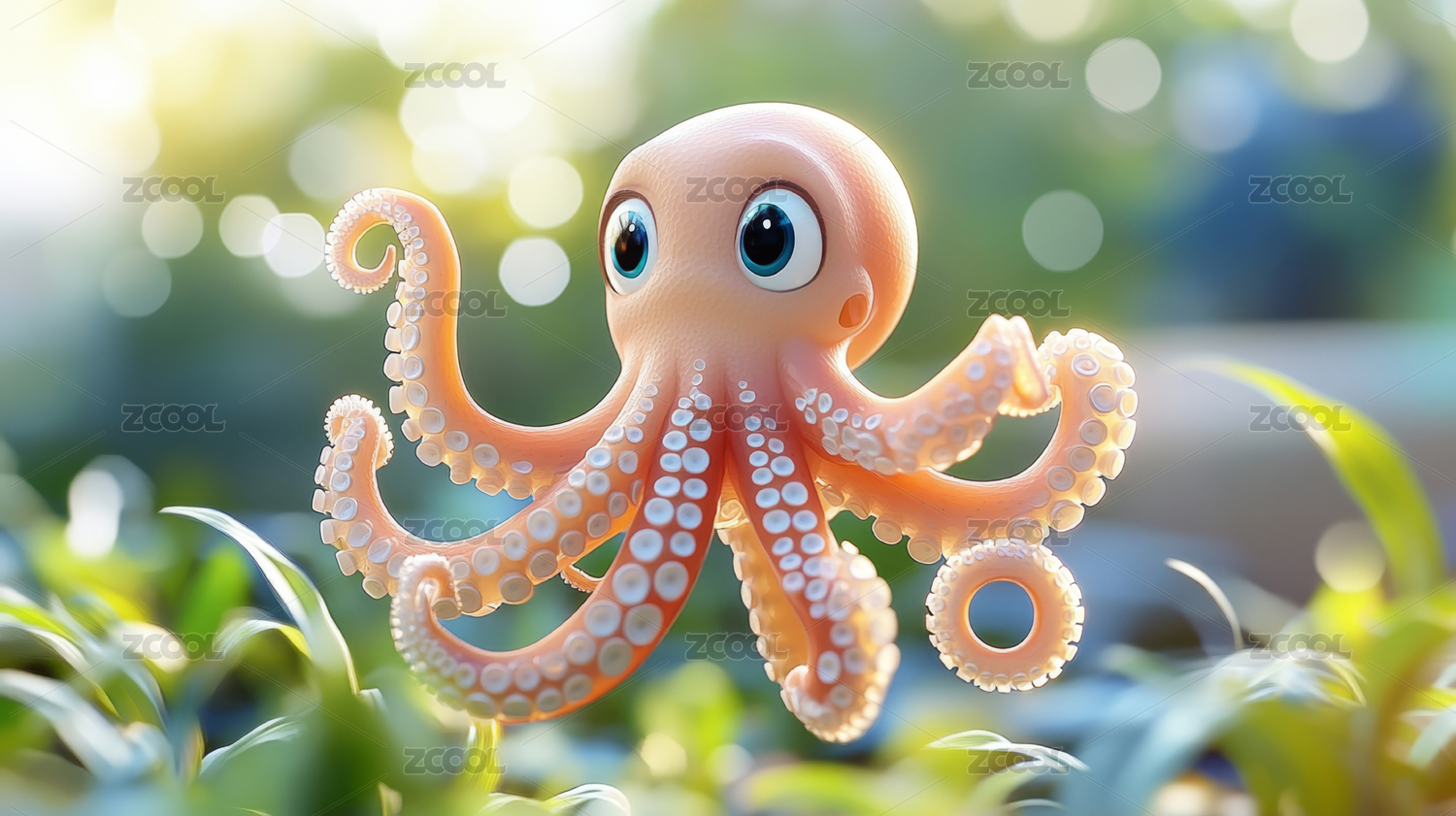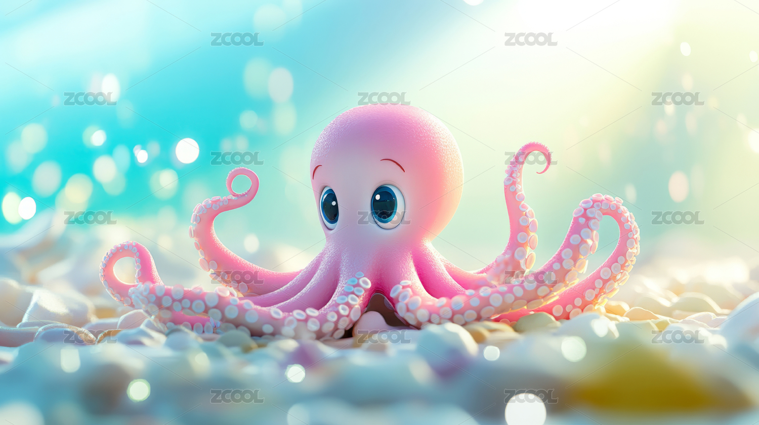 章鱼可爱唯美野生动物3D卡通插画壁纸