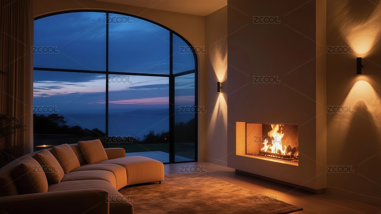 壁炉,沙发,蜡烛,灯光,温馨,客厅,书籍,枕头,地毯