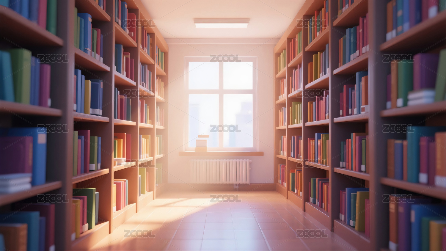 阳光洒满书架的图书馆走廊