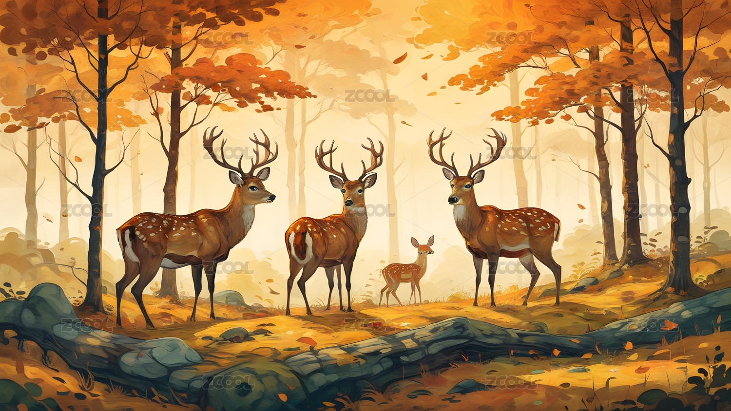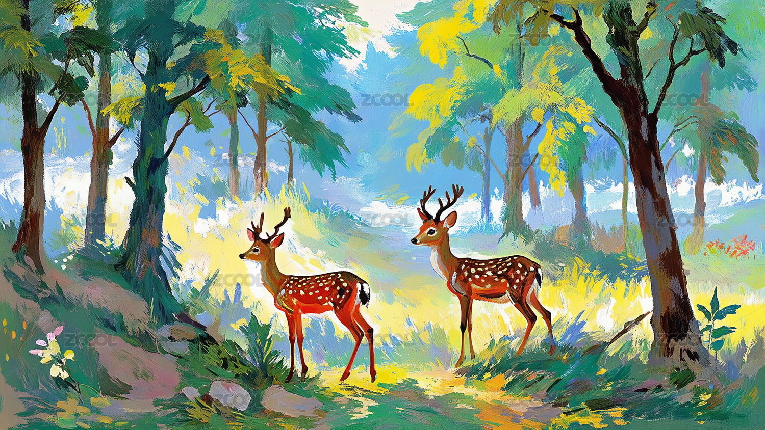 马赛克,装饰画,艺术,碎片,插画,动物,鹿,梅花鹿,树林,森林