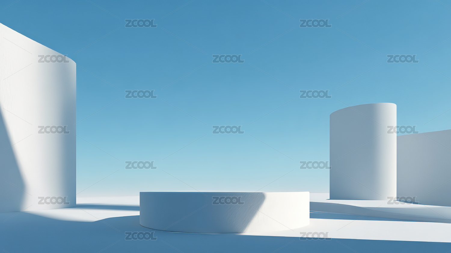 白色几何体在蓝天下的静景