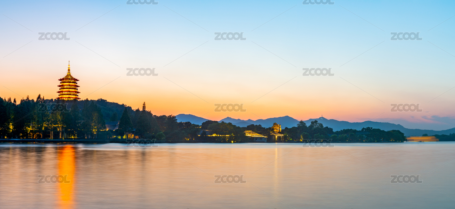 杭州西湖雷峰塔的日落晚霞——雷峰夕照