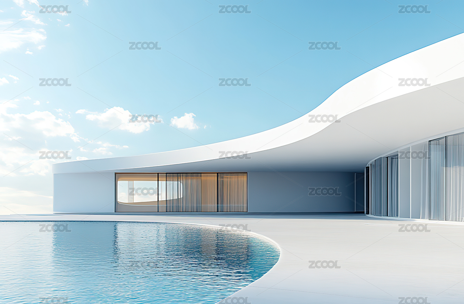 现代,建筑,极简主义,未来,白色,几何,空间感,简约,留白,创意